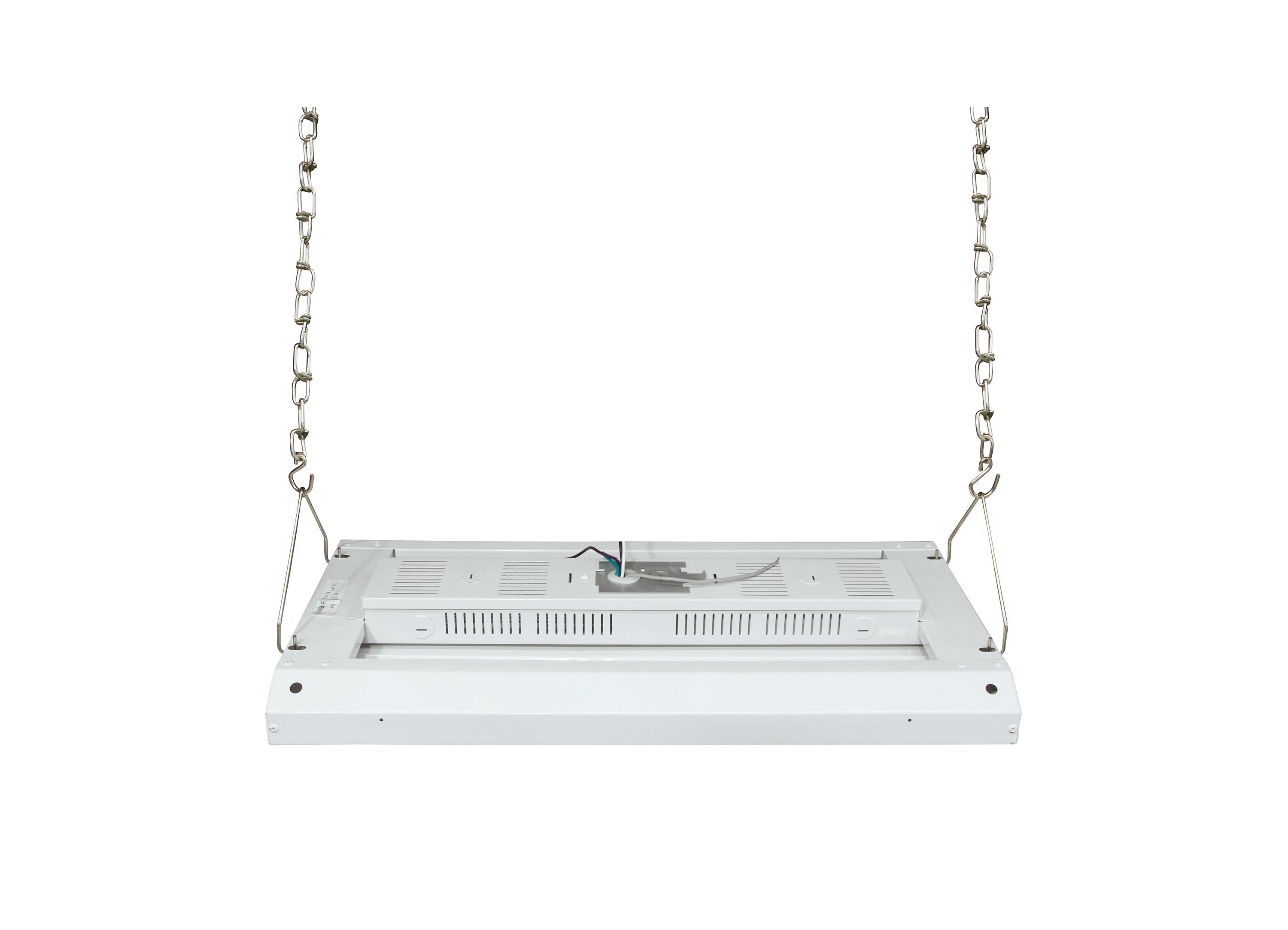 SATCO NUVO's 2ft., 80W, LED linear high-bay fixture is DLC premium and features natural light and a 120 degree beam spread. Damp rated for indoor use, it is suitable for commercial and industrial buildings.