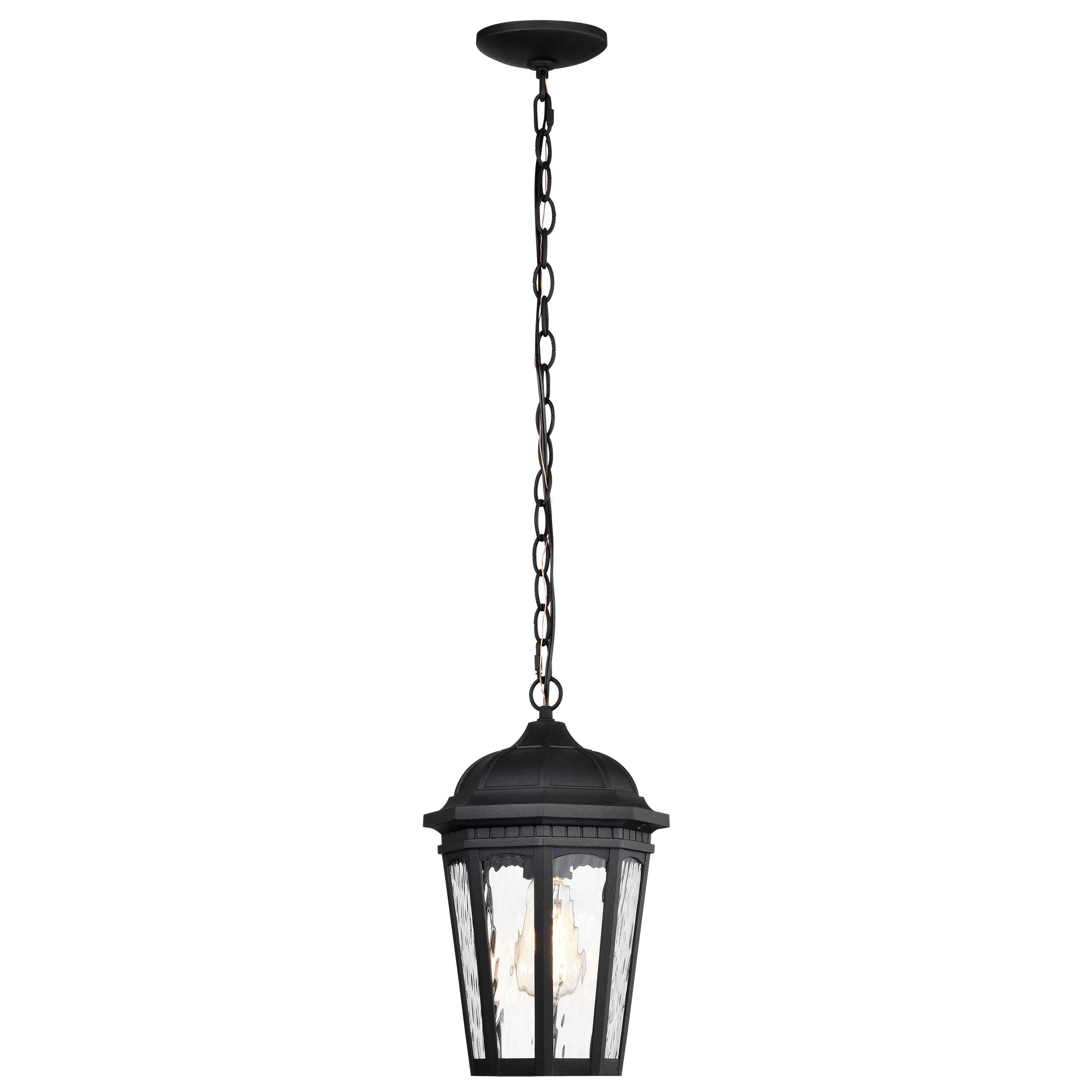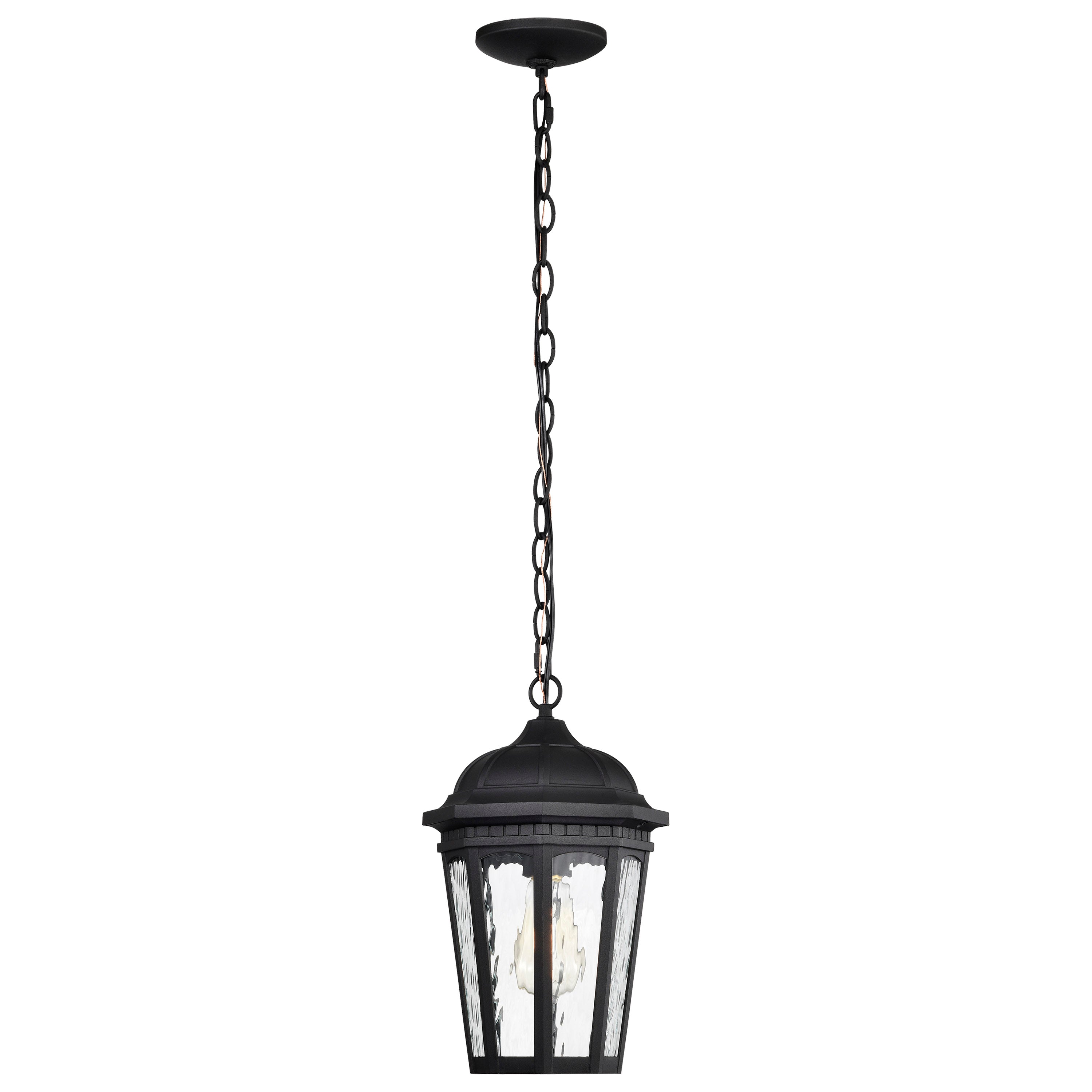 With a hint of provincial design, the East River Outdoor Collection features old-world charm combined with today's style. The rippling, clear water glass dances in the light, and is encased in a beautifully designed fixture with a matte black finish highlighting the curves and subtle detailing on the fixture's body. From Cape to Colonial, this hanging light offers the perfect solution for exterior home lighting.