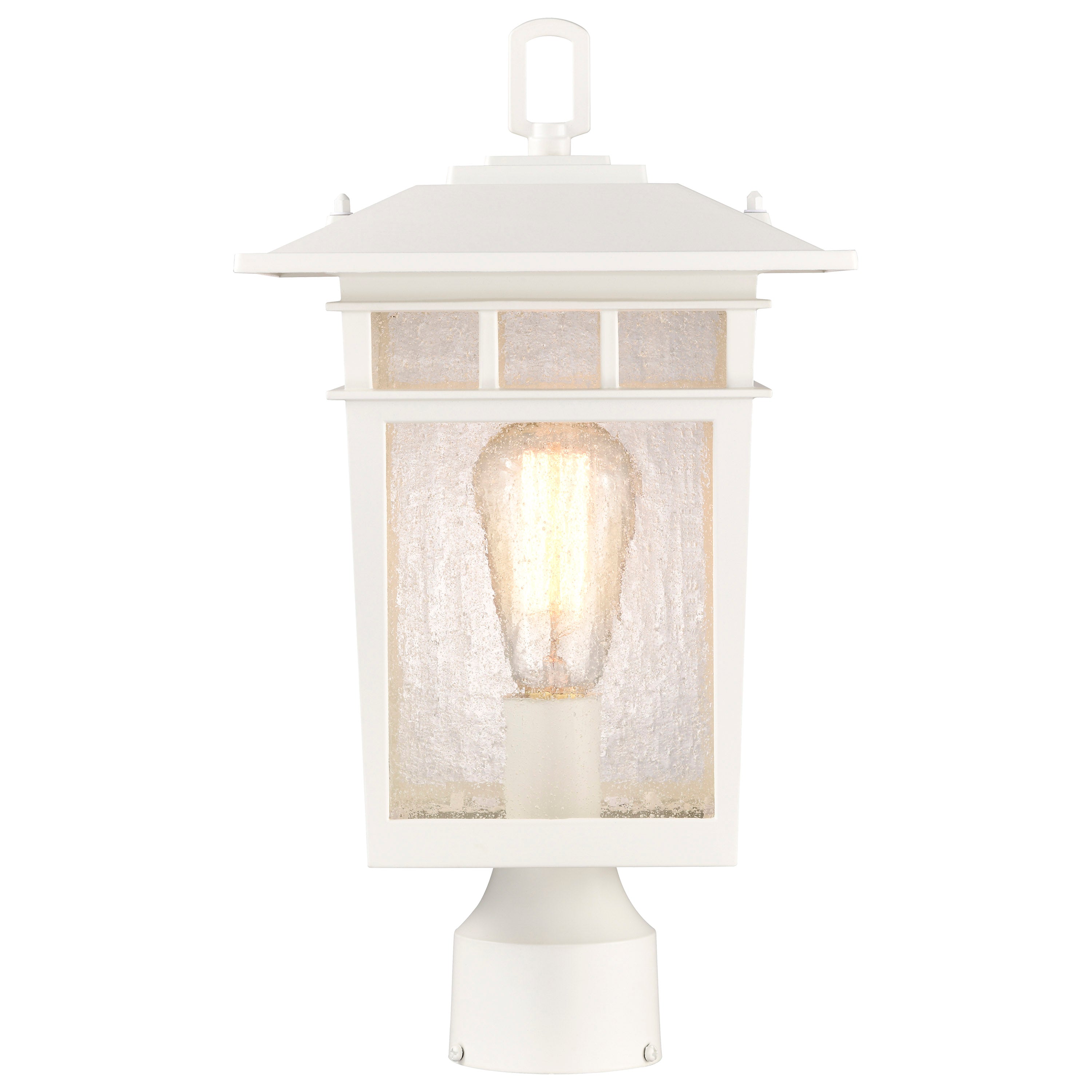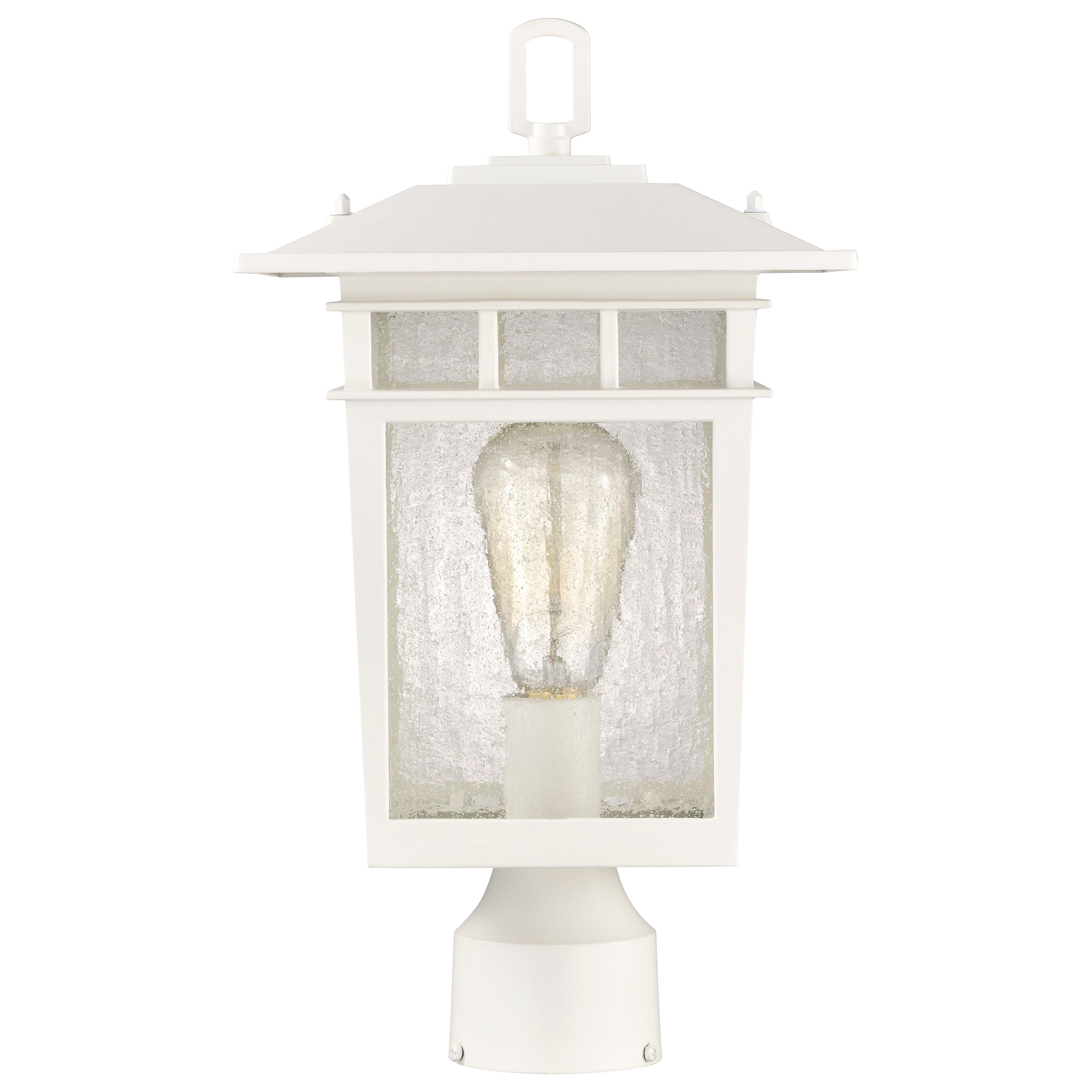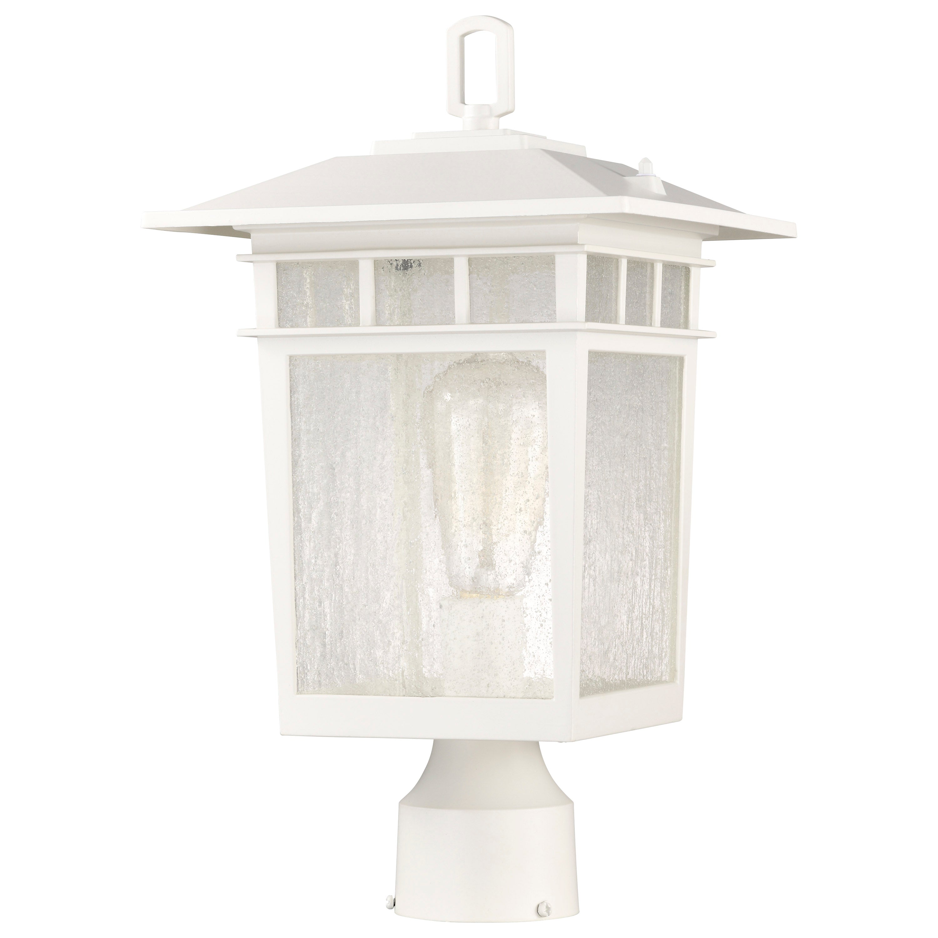 Today's style of craftsman lighting, as shown in the Cove Neck Outdoor Series, works with a variety of home designs. The fixture details on the die-cast aluminum body are highlighted beautifully with a pristine white finish that is versatile in appeal. Go with a vintage-style bulb to showcase the stunning clear seeded glass, providing illumination from all sides. The charming large post light gives exterior lighting a much-needed touch of panache. It is also available in bronze and textured black.