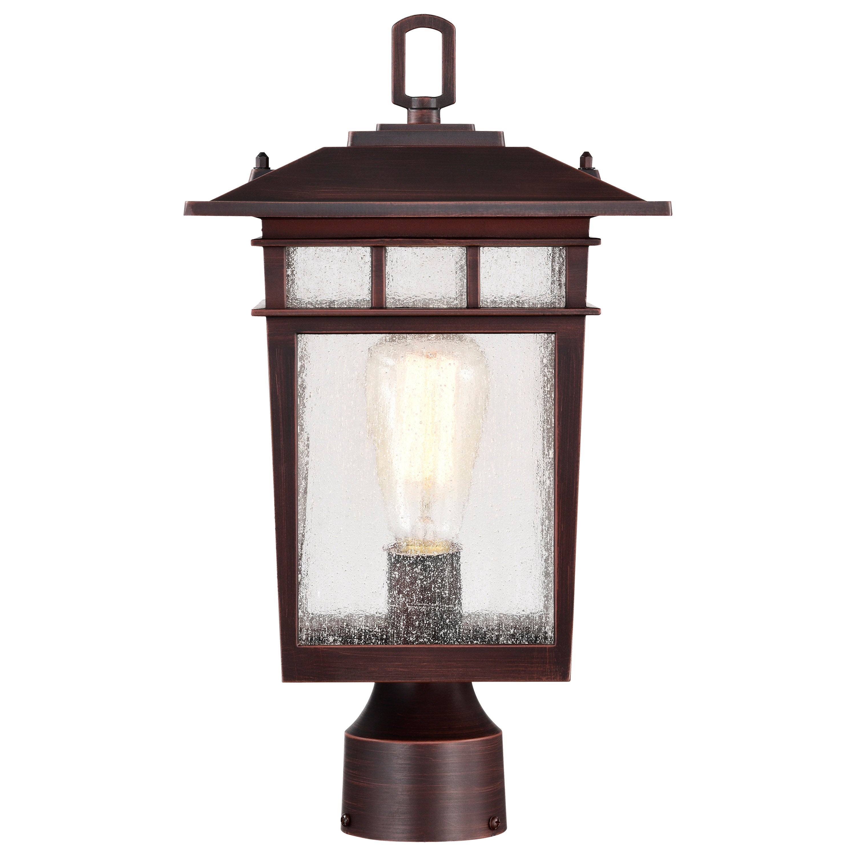Today's style of craftsman lighting, as shown in the Cove Neck Outdoor Series, works with a variety of home designs. The fixture details on the die-cast aluminum body are highlighted beautifully with a rich rustic bronze finish that is versatile in appeal. Go with a vintage-style bulb to showcase the stunning clear seeded glass, providing illumination from all sides. The charming large post light gives exterior lighting a much-needed touch of panache. It is also available in white and textured black.