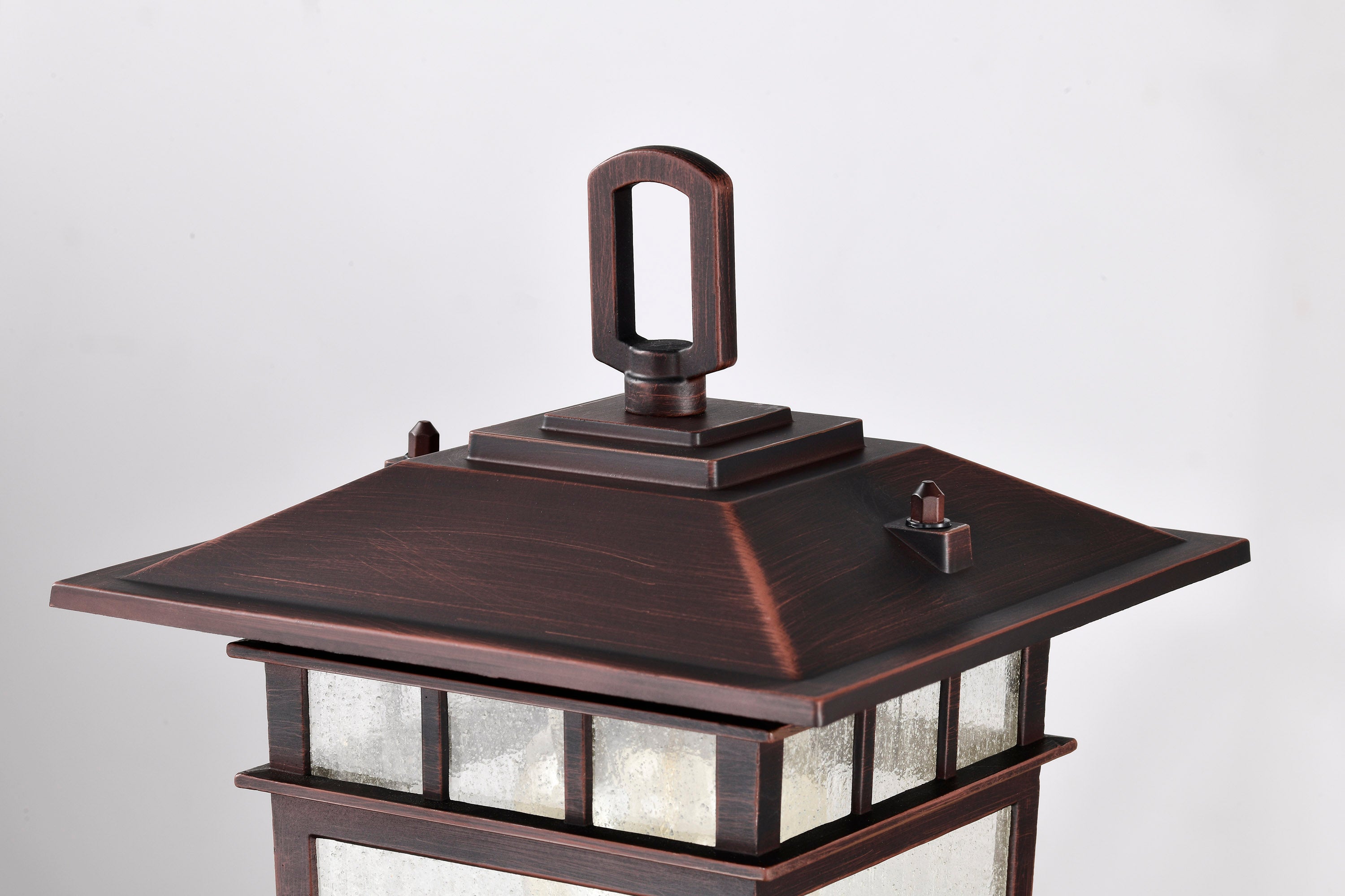 Today's style of craftsman lighting, as shown in the Cove Neck Outdoor Series, works with a variety of home designs. The fixture details on the die-cast aluminum body are highlighted beautifully with a rich rustic bronze finish that is versatile in appeal. Go with a vintage-style bulb to showcase the stunning clear seeded glass, providing illumination from all sides. The charming small post light gives exterior lighting a much-needed touch of panache. It is also available in white and textured black.