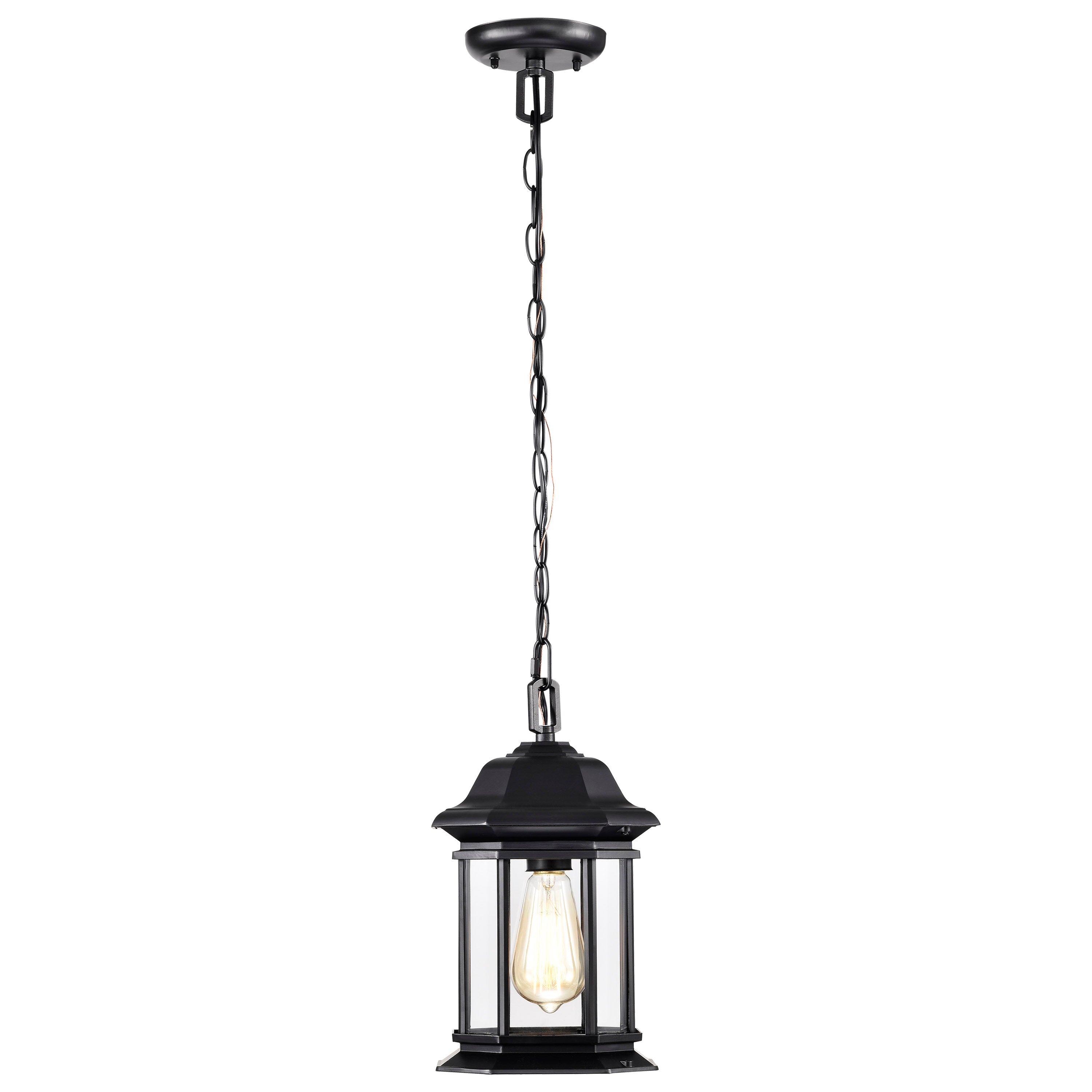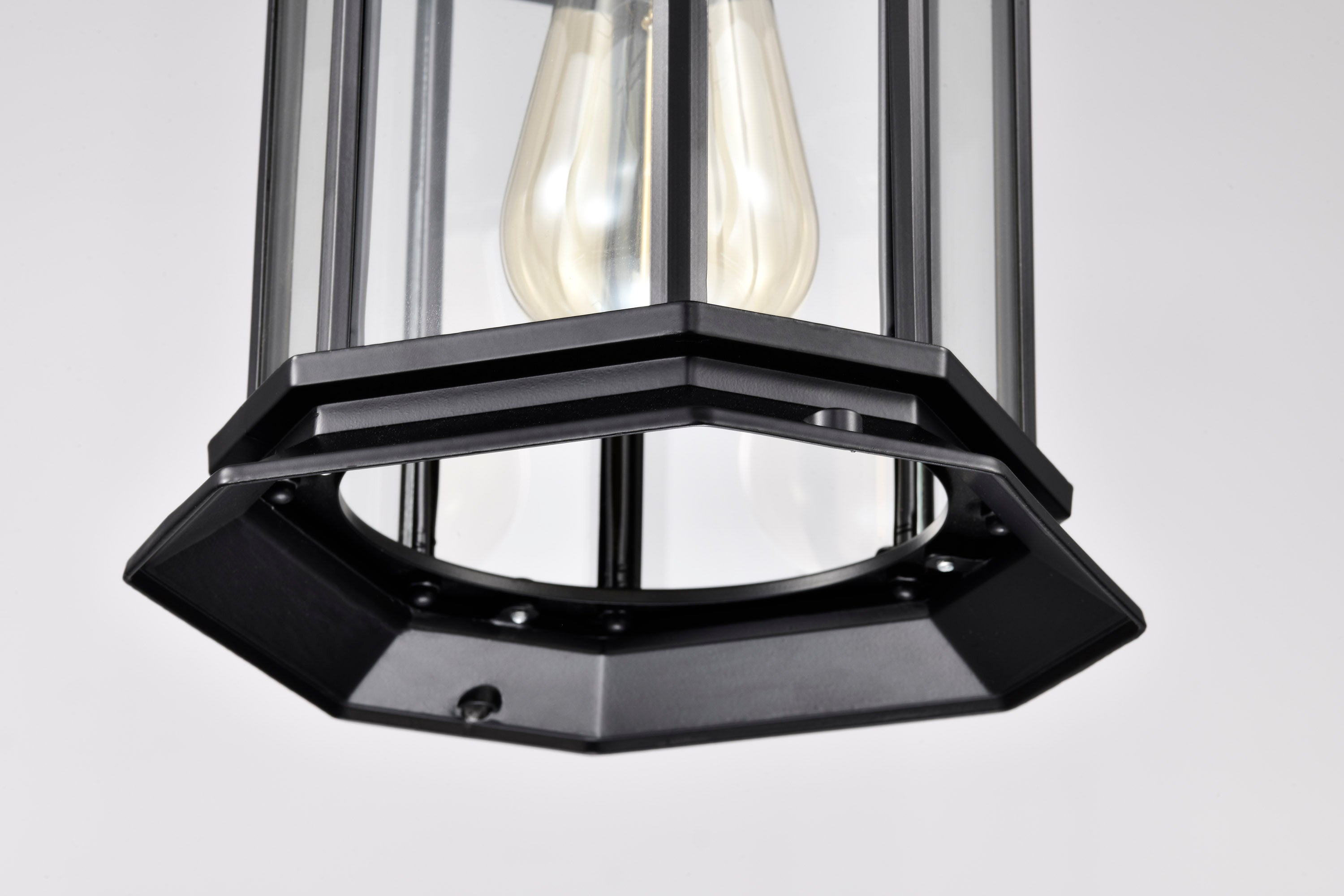 Reminiscent of Tudor-inspired style, the Hopkins Outdoor Lighting Collection guarantees an elegant grace to your home's exterior. Perfect illumination is provided with multiple clear glass panes showcasing the bulb; go with a vintage-filament bulb for maximum effect. A matte black finish accentuates the curves and planes of the die-cast aluminum fixture body with its rich depth. The time-honored design of this hanging light will shine brightly on your home's exterior landscape for years to come.