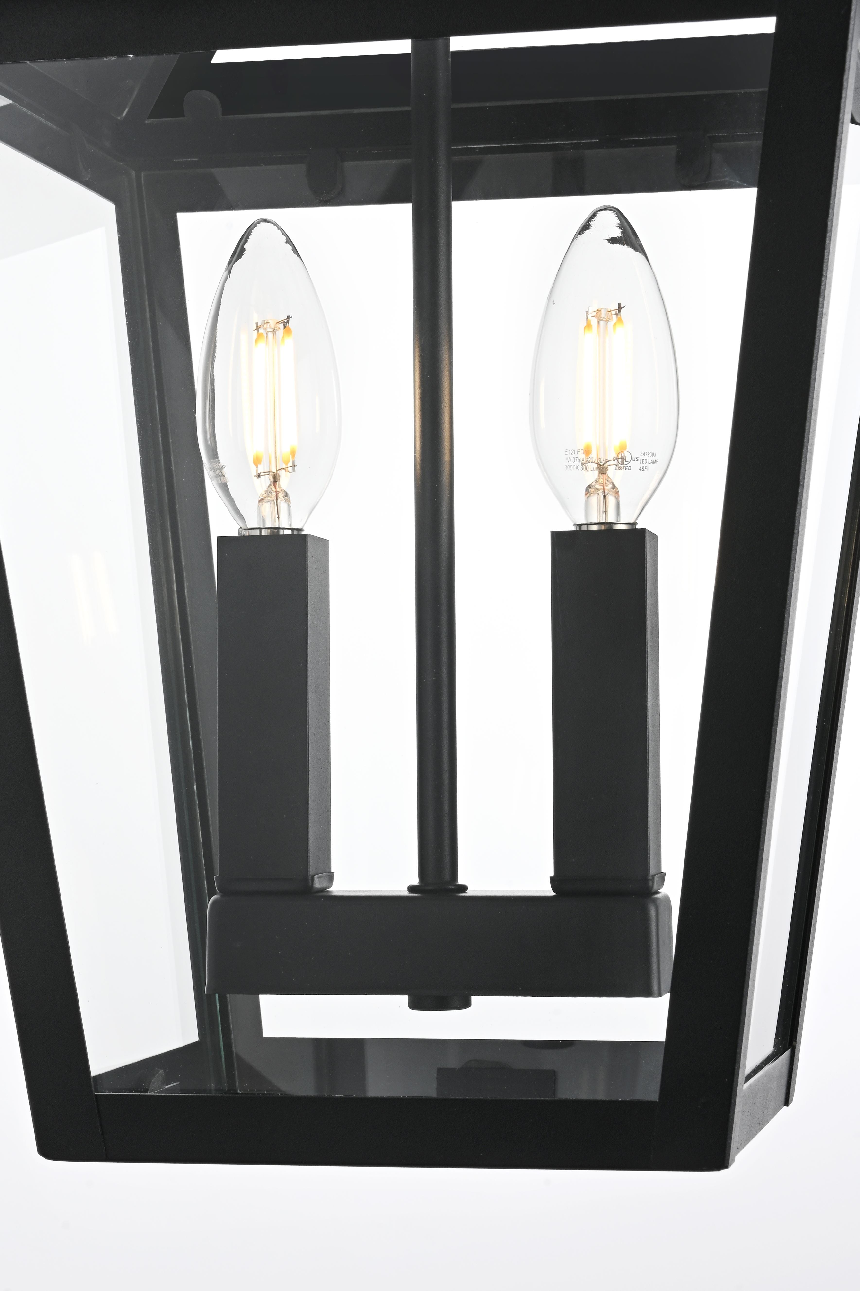 Introduce a classic and timeless glow to your outdoor space with this stunning lantern-style pendant light. Featuring a classic tapered frame and sophisticated matte black finish, this pendant light brings a refined, versatile aesthetic that enhances any home exterior, whether traditional or contemporary. With dual candelabra bulb holders, this pendant adds a vintage touch while ensuring bright, effective illumination. The tapered glass panels allow for maximum light output, creating a warm and inviting ambiance. Built from weather-resistant metal and ETL certified for wet locations, this pendant is crafted to withstand the elements while maintaining its beauty. Its adjustable chain allows for easy height customization, making it suitable for porches, patios, or entryways. Illuminate your home in style with this beautifully crafted outdoor pendant light.