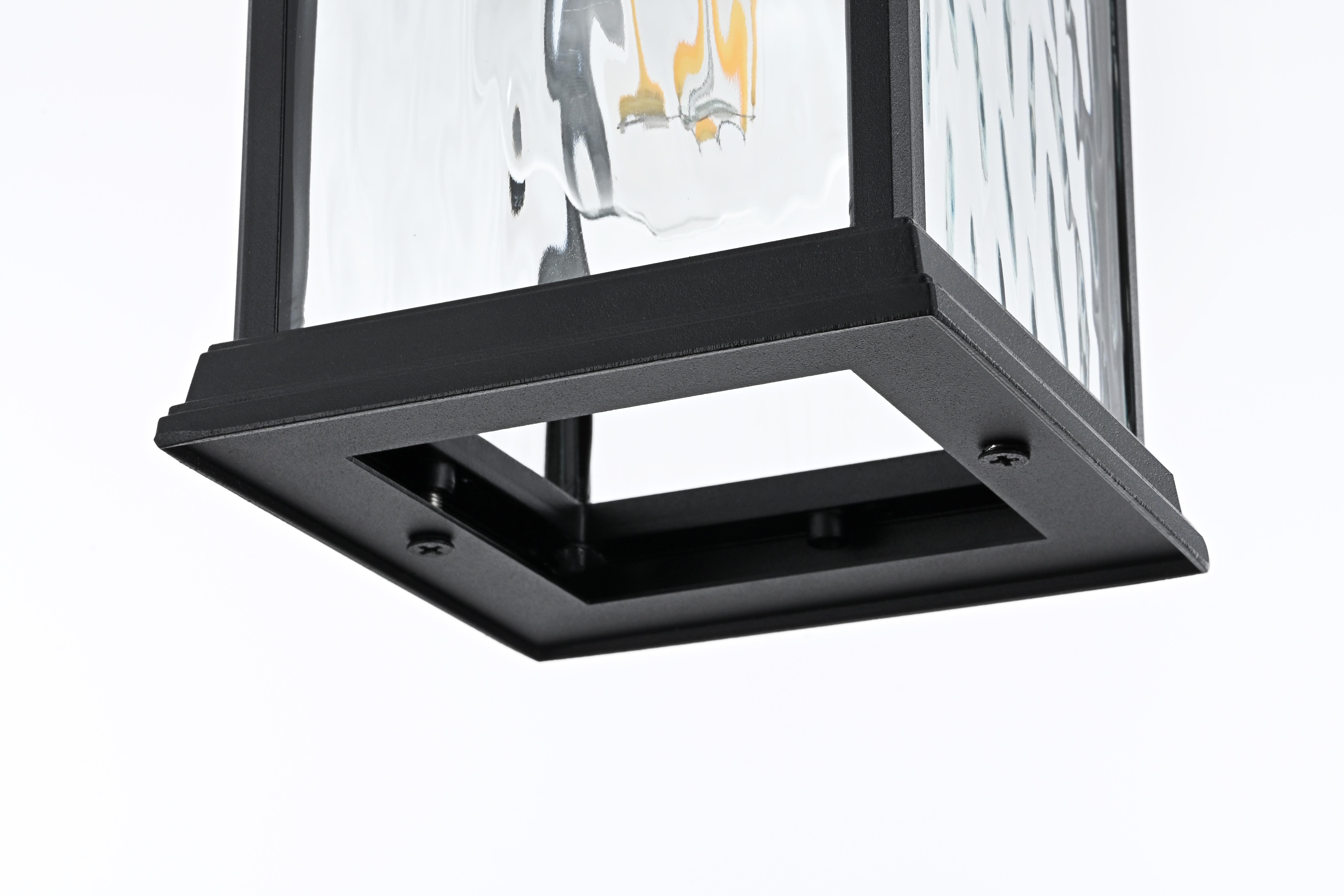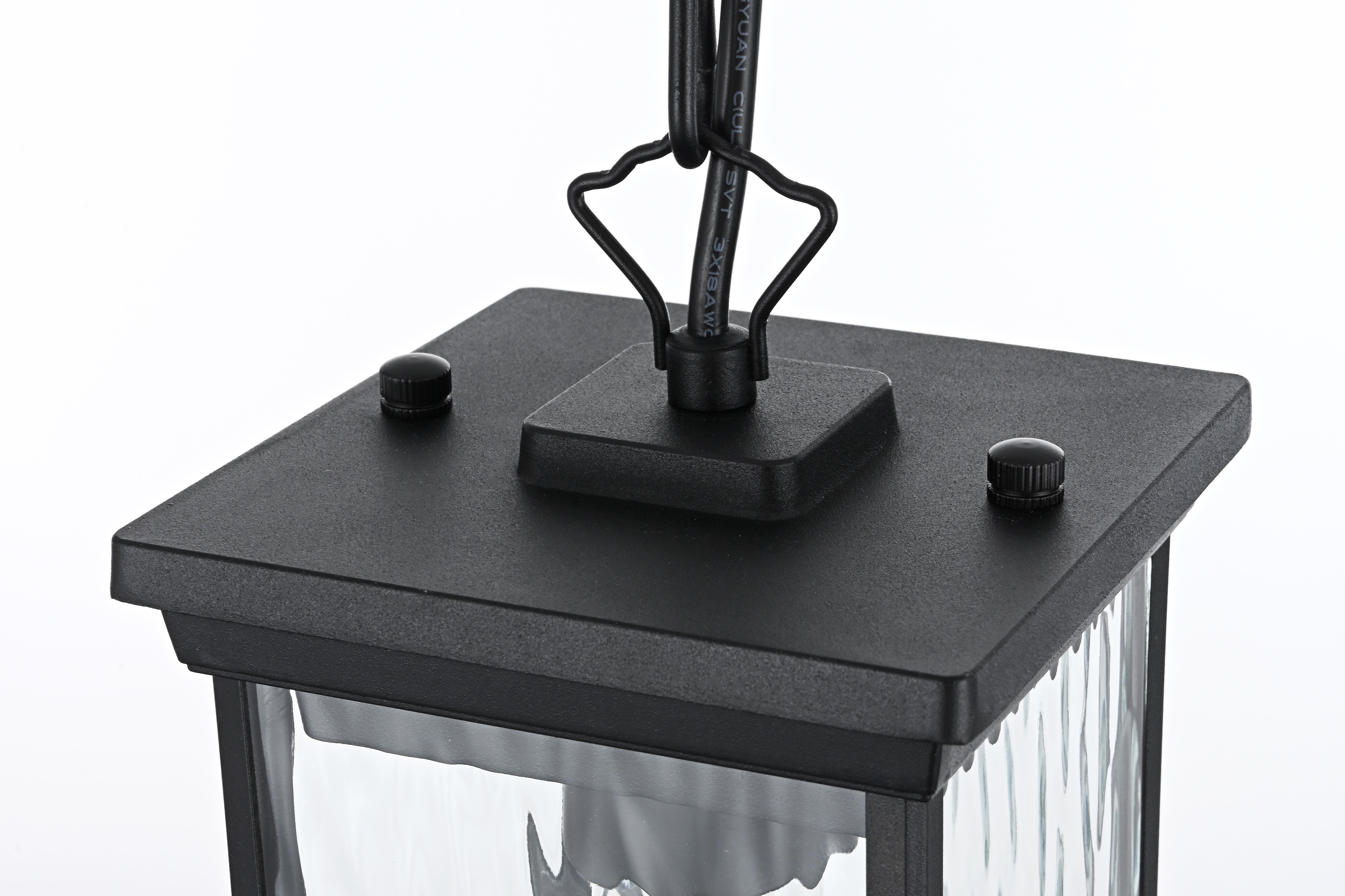 Illuminate your outdoor living space with this grand pendant light, featuring beautiful water glass panels that add a sophisticated texture and shimmering effect to any setting. The classic rectangular lantern design, combined with a sleek matte black finish, brings timeless charm with a modern twist, making it suitable for a wide variety of exterior decors. With its visible candelabra bulb, this pendant light creates a vintage aesthetic that looks stunning when paired with decorative filament bulbs. Constructed from weather-resistant metal, this pendant is designed to endure the outdoor elements, ensuring lasting beauty. The adjustable chain provides customizable height, making it perfect for porches, patios, or entryways. Plus, the open-bottom design offers easy maintenance, and ETL certification ensures reliability and safety in wet locations. Upgrade your home’s curb appeal with this beautifully crafted pendant light that blends style and practicality.