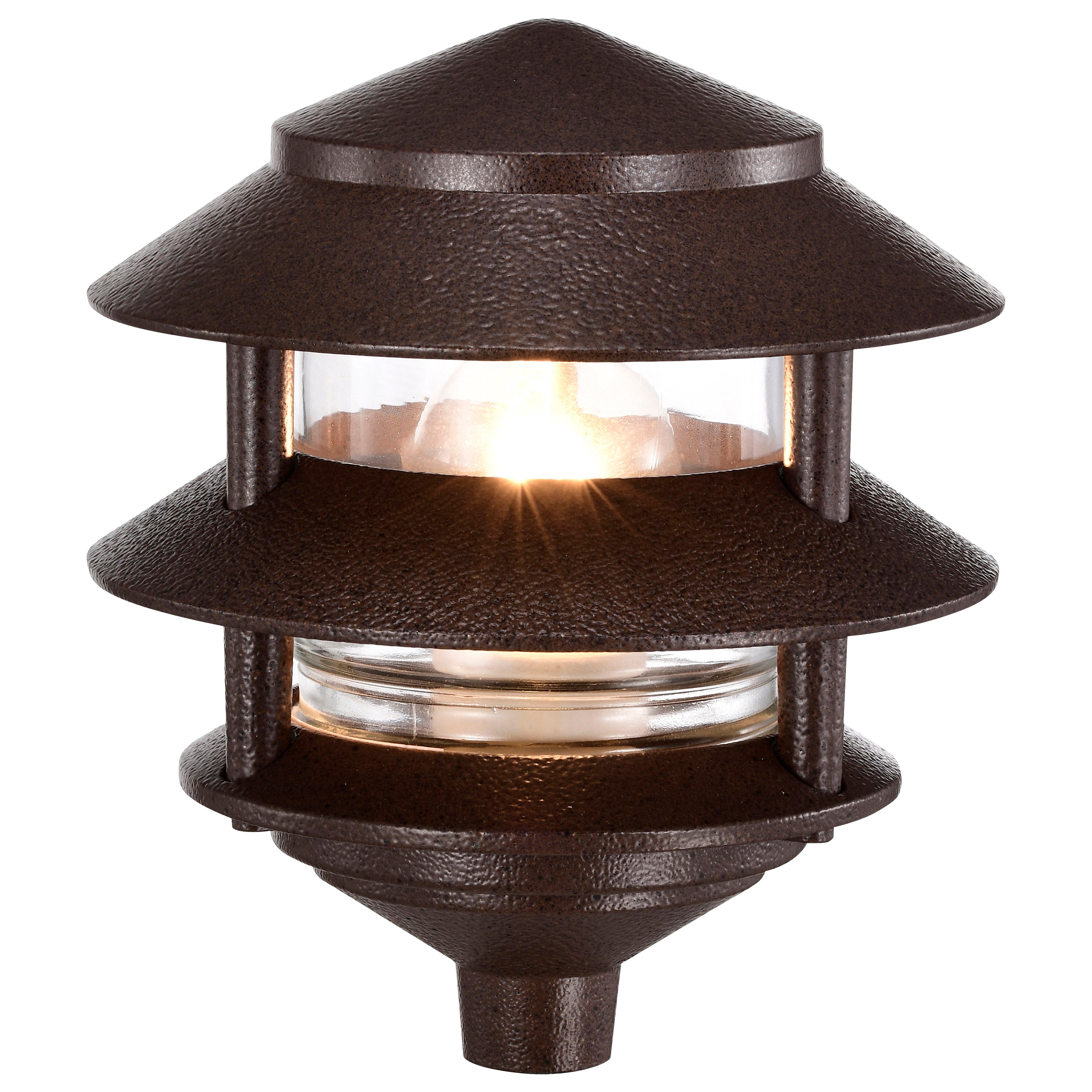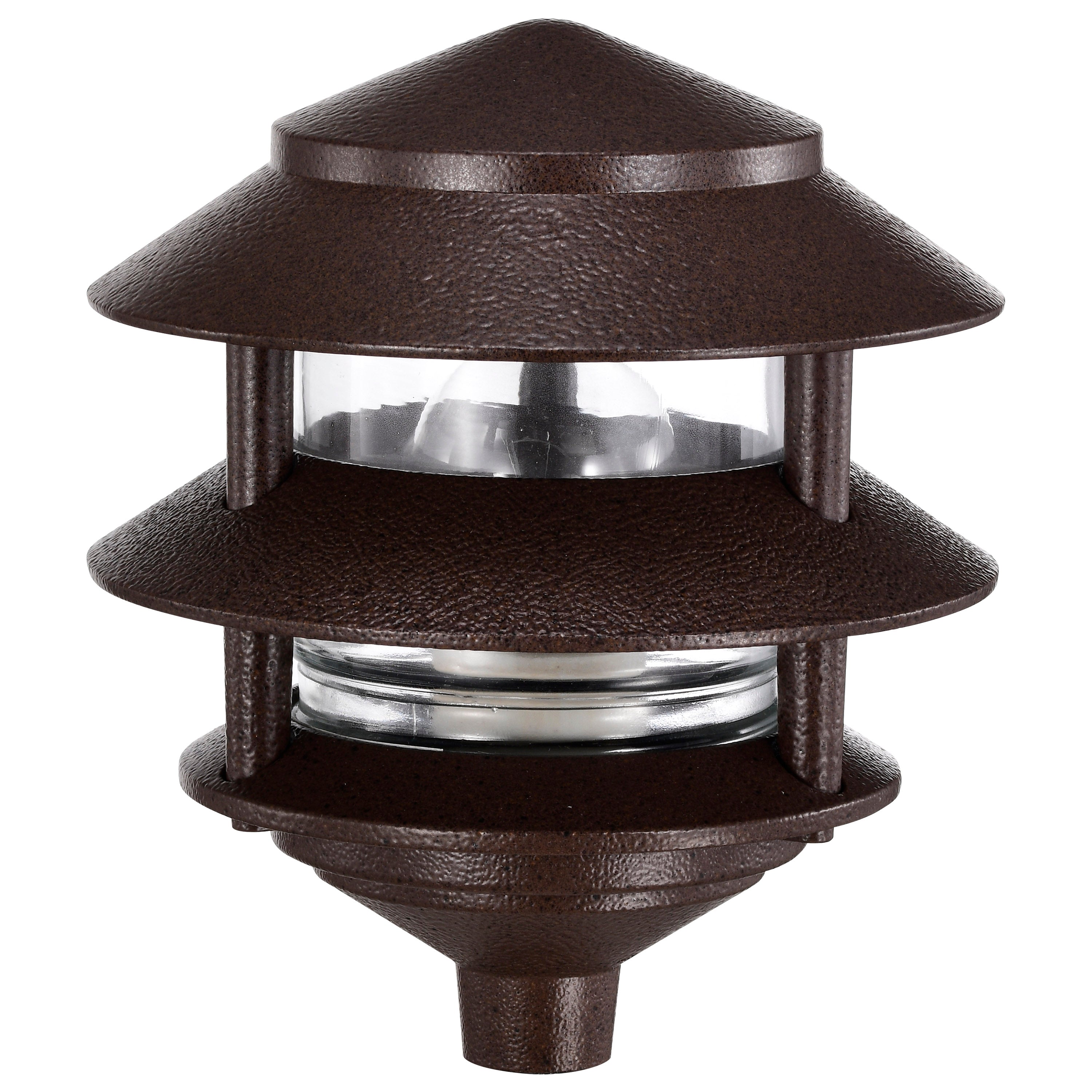 Illuminating your garden or flower beds has never been easier with the SATCO NUVO pagoda-style light. The small hood exterior is finished in old bronze to blend in seamlessly with your florals and shrubs. Idyllic for brightening the landscape of your home with an inviting and glowing ambiance.
