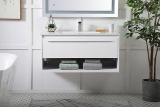 Save space and make your bathroom appear bigger with this 40" floating vanity in a white finish. Its minimal design will have you in awe, while its clean lines will leave your room feeling fresh and uncluttered. The Single u-drawer pulls out for storage while the open space below allows you to place extra towels or various other essentials.