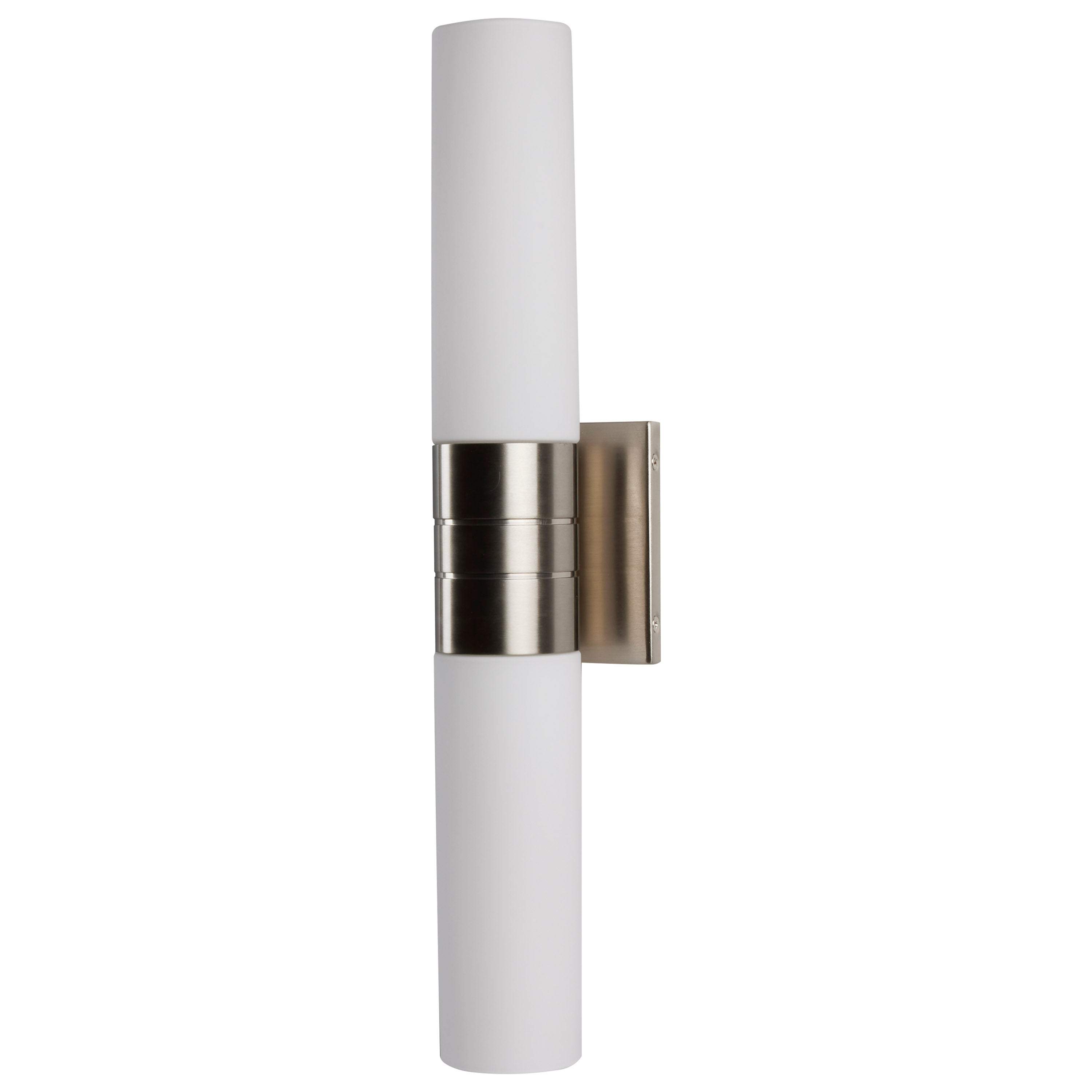The Link is sleek and refined lighting ideal for any vanity or bathroom design. It features a brushed nickel finish with ringed etching, adding interest to the modern style. Install a pair on either side of a vanity or mirror, create an edgy look in the hallway or dining room. Indoor applications are endless with this tube wall sconce.