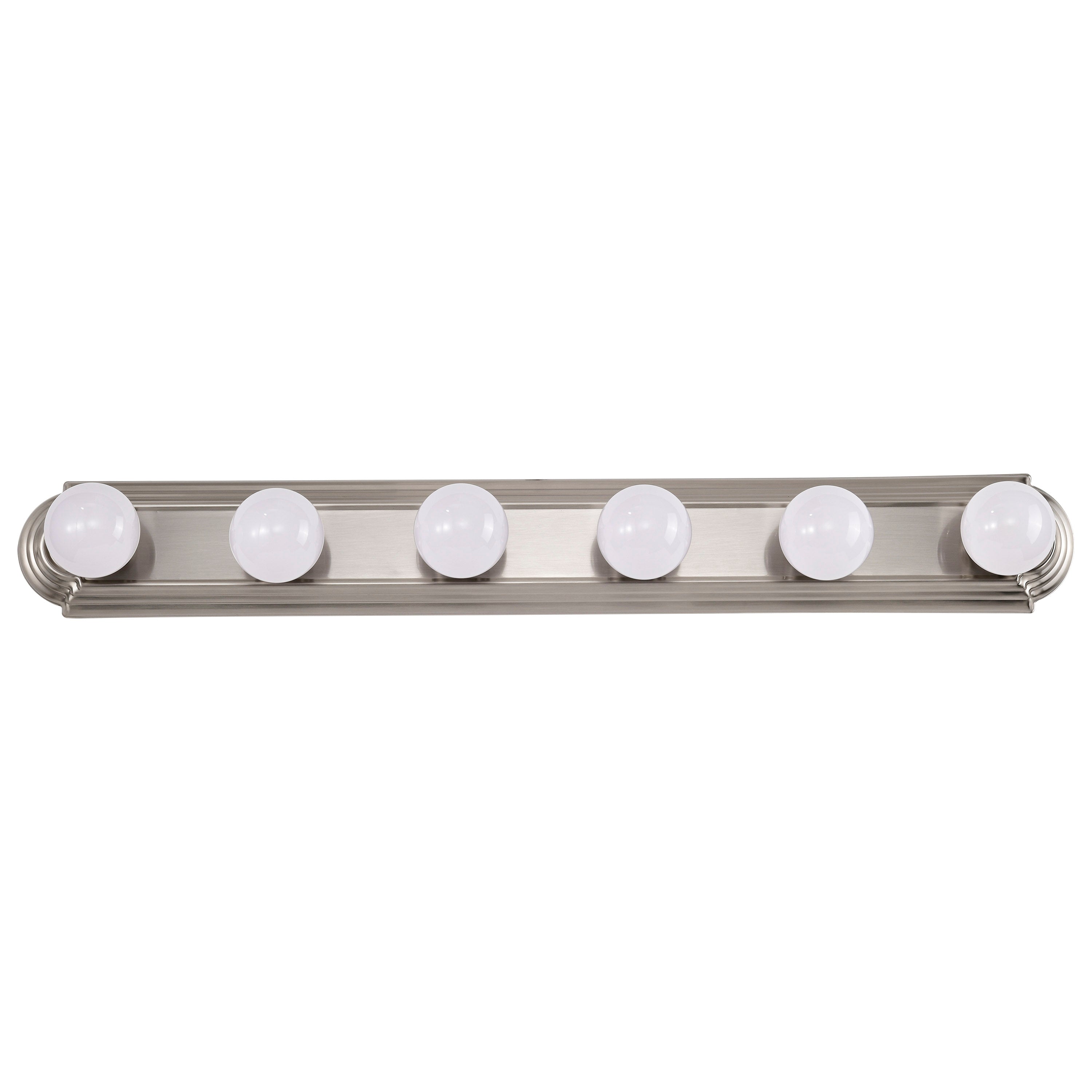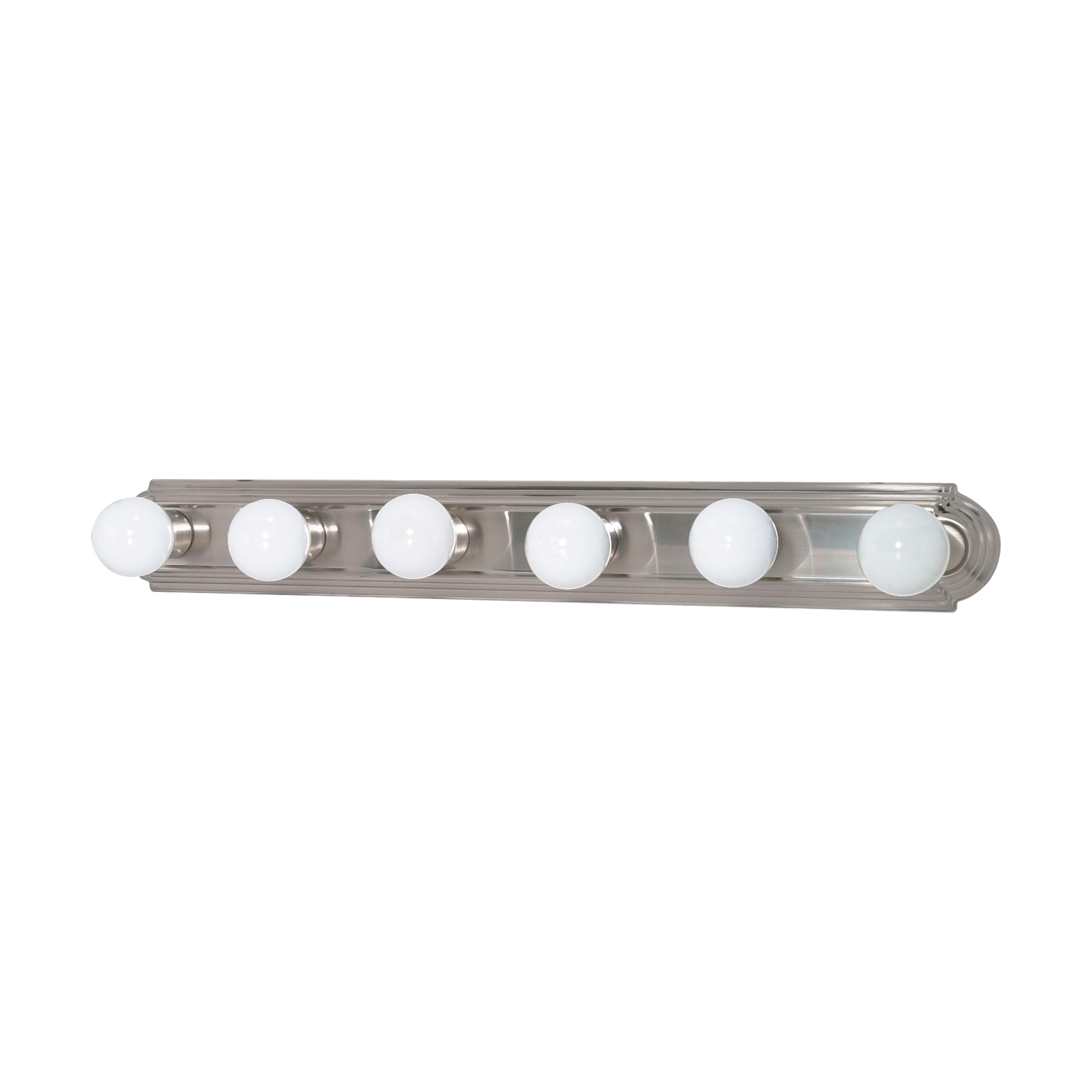 Satco's 100-watt, 6 light racetrack vanity is an elegant lighting solution for the home. Illuminate your bathroom, hallway or other interior spaces with the perfect combination of form and function. Designed to cast a soft white light over a wide area, this fixture, available in polished chrome, brushed nickel, old bronze, polished brass, and traditional white finishes is sure to impress your guests with its style and elegance.