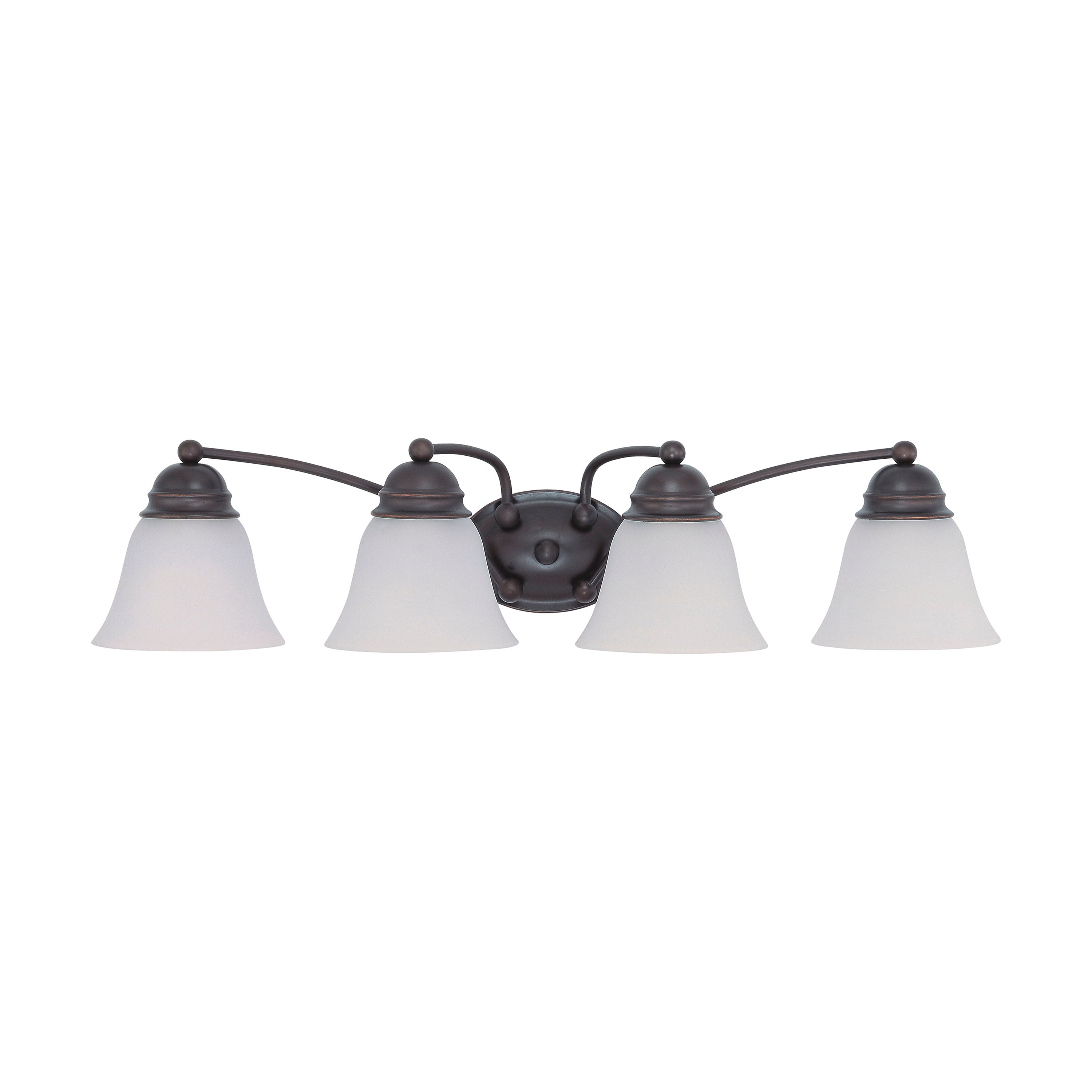 The Empire 4 light, 29 inch vanity fixture features a deep rich mahogany bronze finish, accented by frosted white glass. Illuminate hallways, foyers, or any room in the home that could use some extra lighting with this easy to install fixture. Stylish and elegant, impress your guests with this sophisticated vanity fixture.