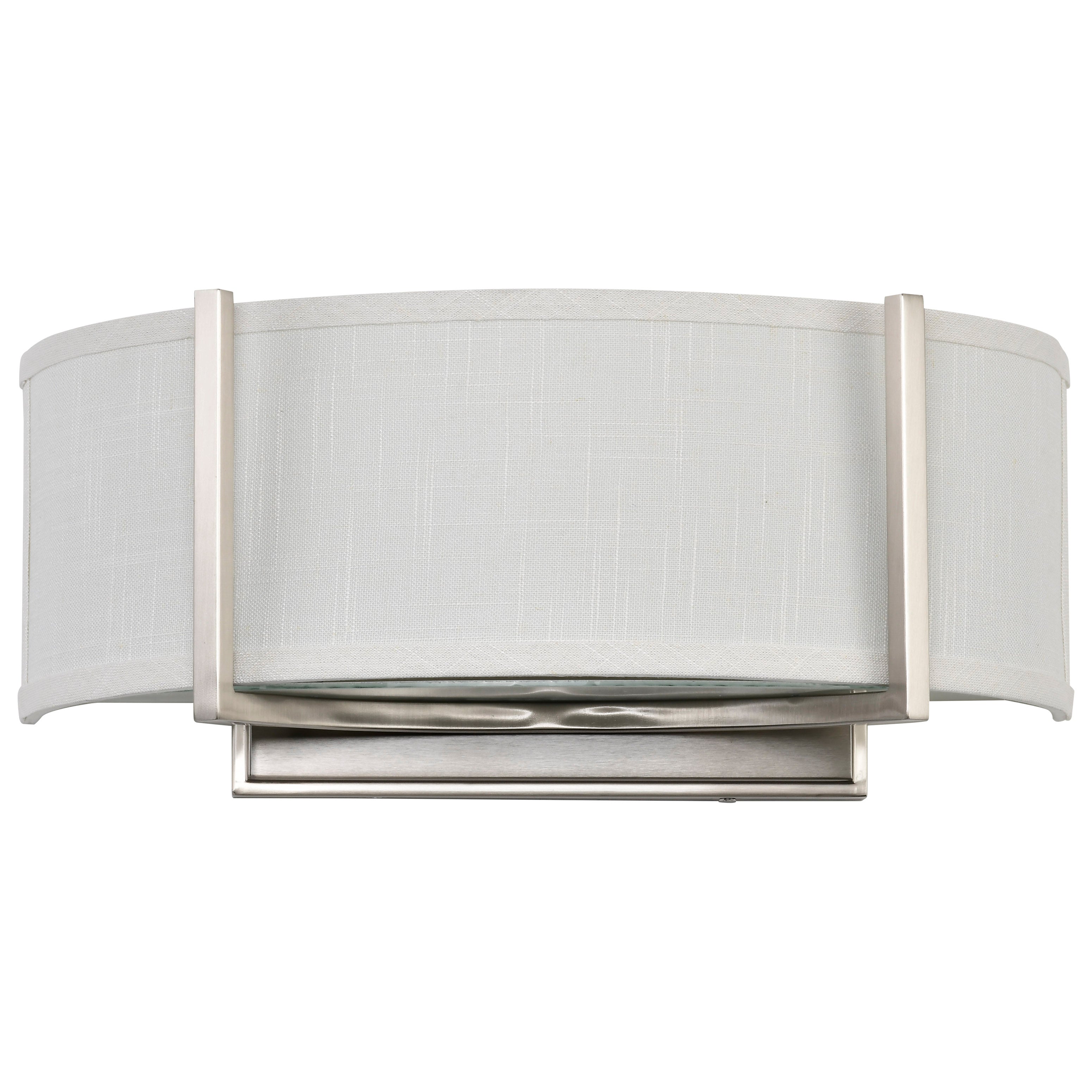 The Gemini 2 light wall sconce is a relaxed, contemporary design which utilizes basic geometric design elements to achieve form and balance. Illuminate hallways, living rooms, and dining rooms with this sleek wall sconce. Elegant and stylish, the brushed nickel finish with a slate gray fabric shade adds sophistication to any home.