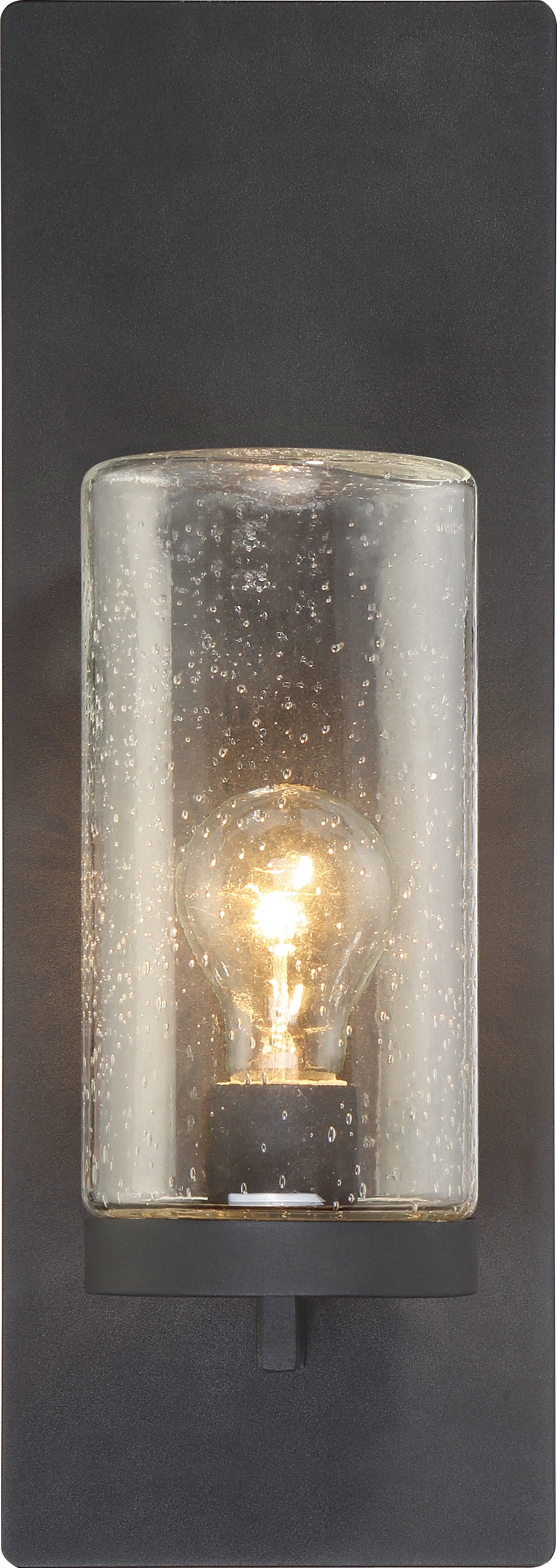 The Indie 1 light large wall sconce is grace and confidence in a straightforward design. This indoor wall sconce is an elegant lighting solution for the home featuring a textured black finish, accented with clear seeded glass. Sleek and contemporary, this wall sconce adds style to any home.