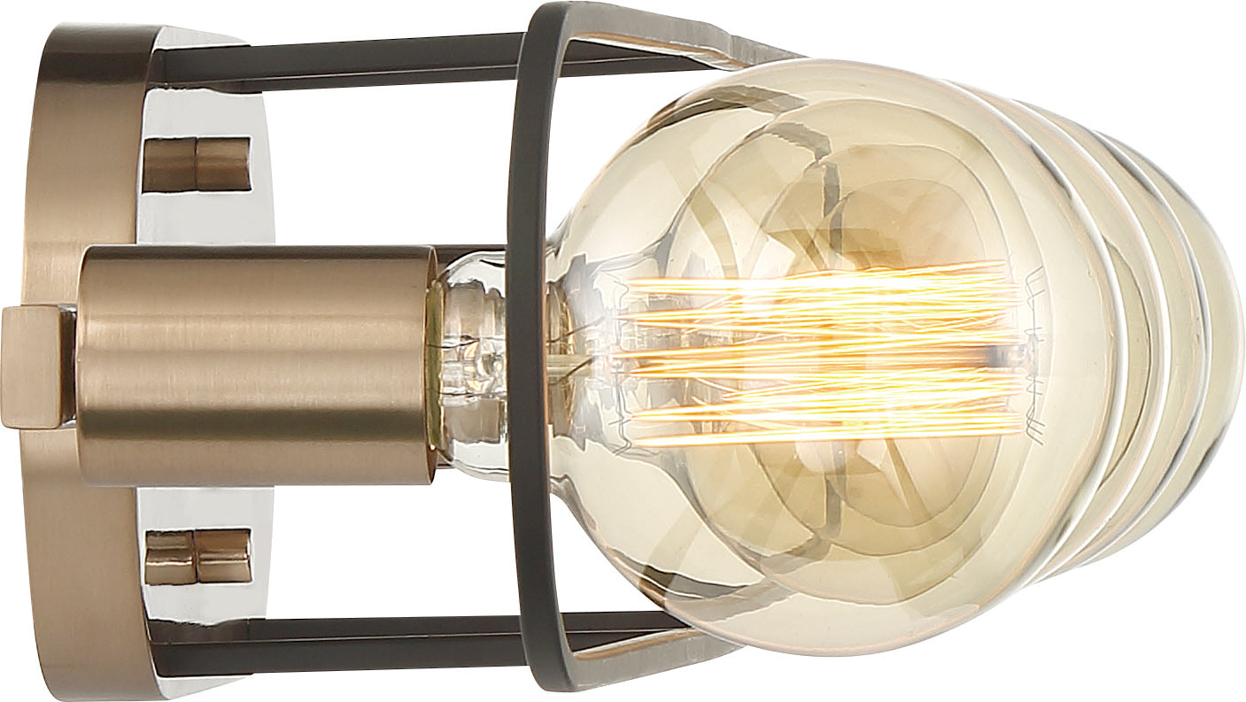 The Chassis 4 light vanity is a stylish lighting solution for the home. The industrial Modern open concept shows off four vintage G25 Edison bulbs surrounded by a singular band of matte black framed against a brushed brass backdrop finished in copper brushed brass. Elegant and eye-catching, this 4 light vanity adds style to any home.