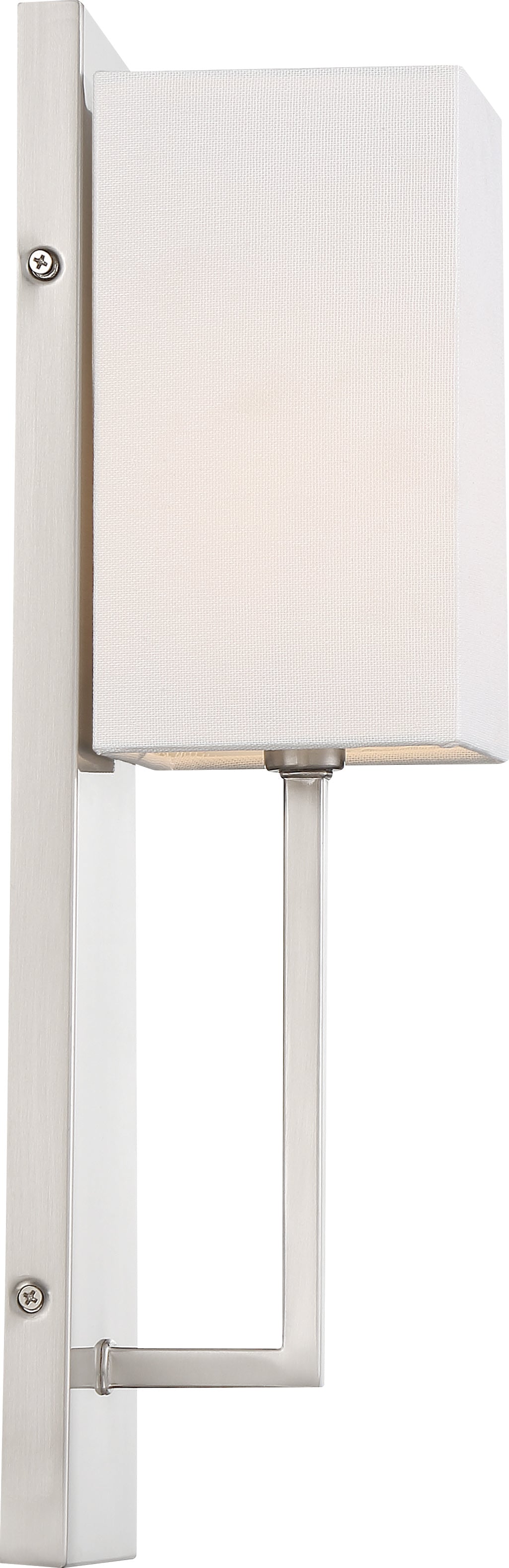 The Vesey 1 light wall sconce is precision in design. The slim, cosmopolitan design features an elongated brushed nickel back plate and a lean fitted white shade. Sleek and contemporary, this 1 light wall sconce adds style to any home.