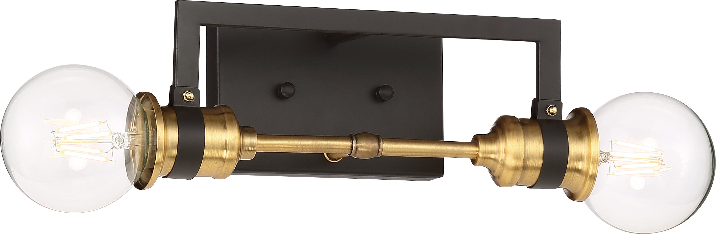 The Intention 2 light vanity light is styled with form and function for that perfect industry design. The simple base is finished in black with warm brass accents on the sockets, decorative lug nuts and the lower support arm. We recommend G25 shaped bulbs to enhance the look of this simple yet tasteful vanity light.