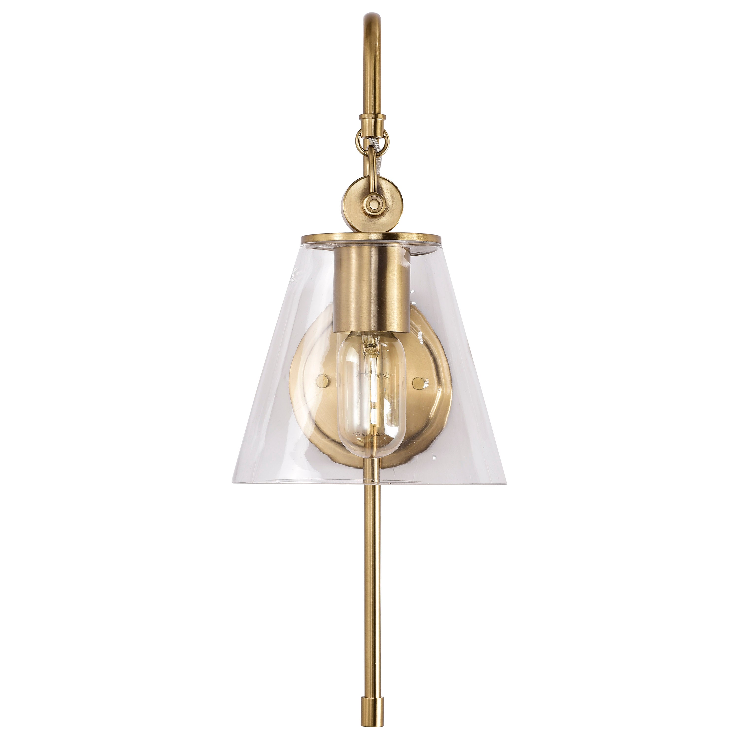 With subtle detailing, the Dover wall sconce is graceful yet unassuming. The simple clear glass shade features trim finished in vintage brass to match the fixture's body. Place in a dining room for ambiance, or bring added light to a dark hallway or entry.