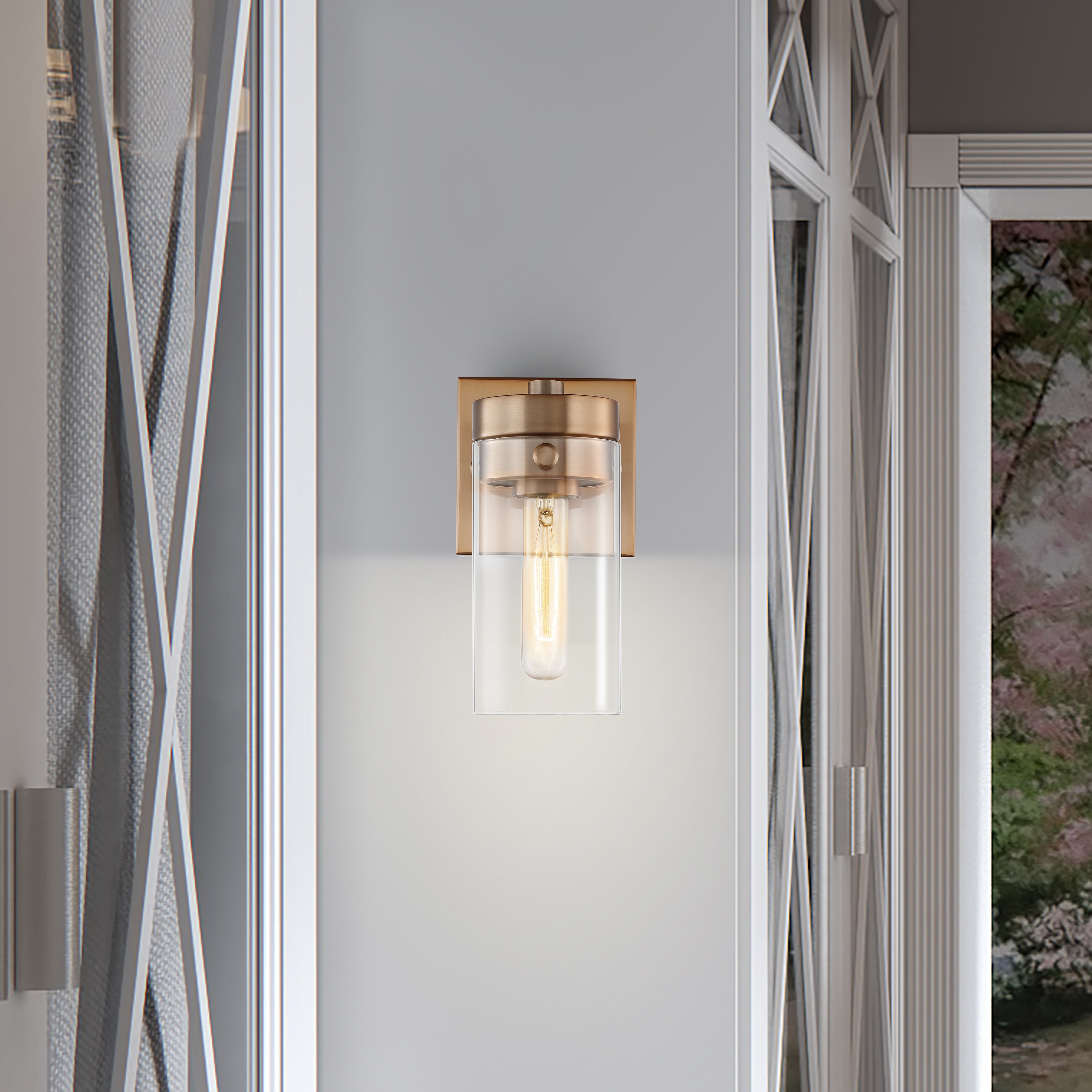 The blend of styles (modern, industrial and chic) is incorporated beautifully into the design of the Intersection one-light vanity fixture. The cylindrical clear glass shades showcase a vintage filament bulb for a touch of nostalgia. The luster of the rich, burnished brass will pair superbly with existing finishes. Apply to your bathroom vanity, or in an entryway to bring great design to your home.