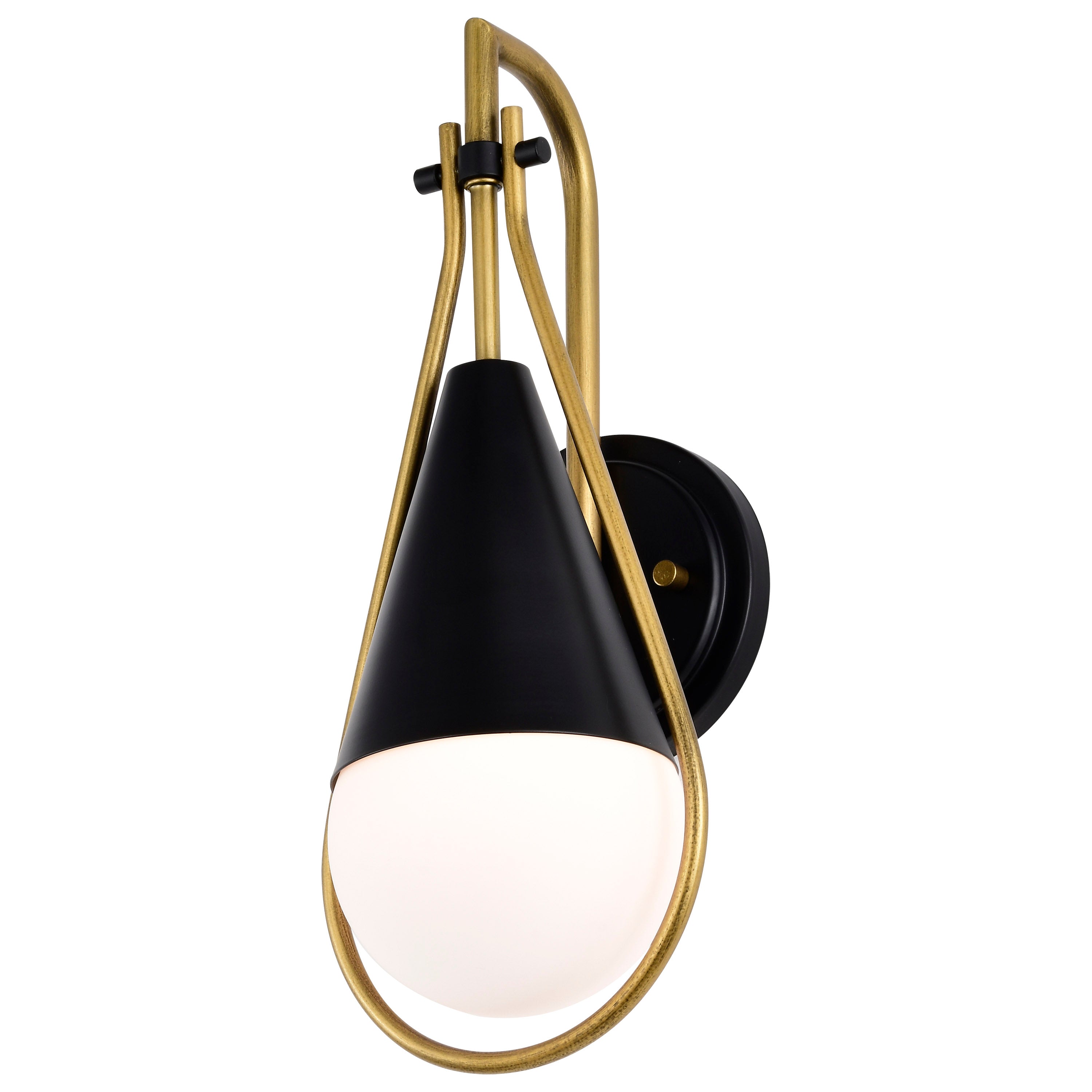 A modern collection with a twist, the Admiral series features a dual finish, unique design, and a fashionable statement for home luminaires. A suspended tear-dropped shape is comprised of matte black with natural brass elements encompassing the fixture. The white opal glass orb shields the light source for smooth, even lighting to bring a warm glow to any space. A beautiful design that is versatile and will compliment a variety of home decors.