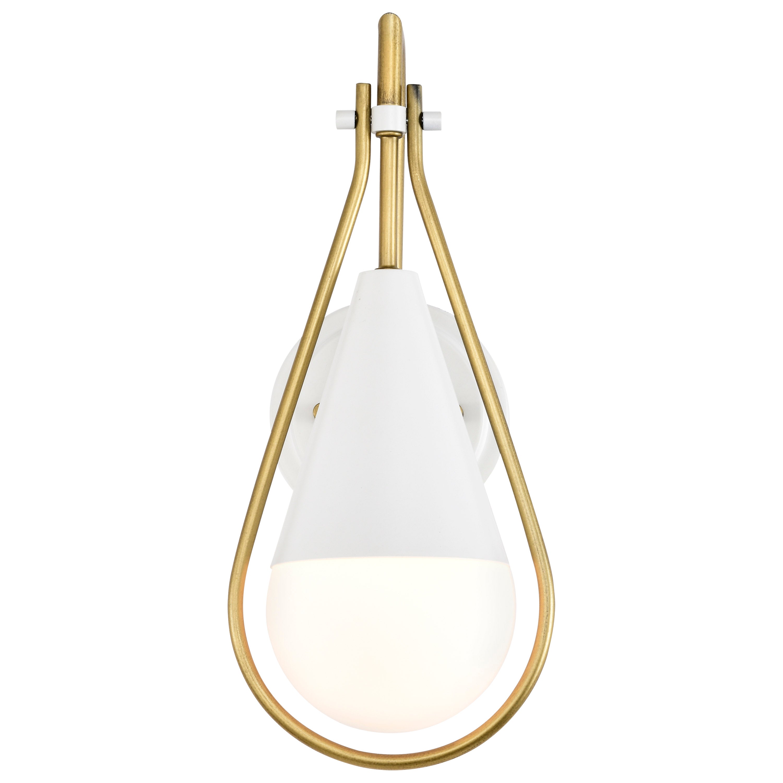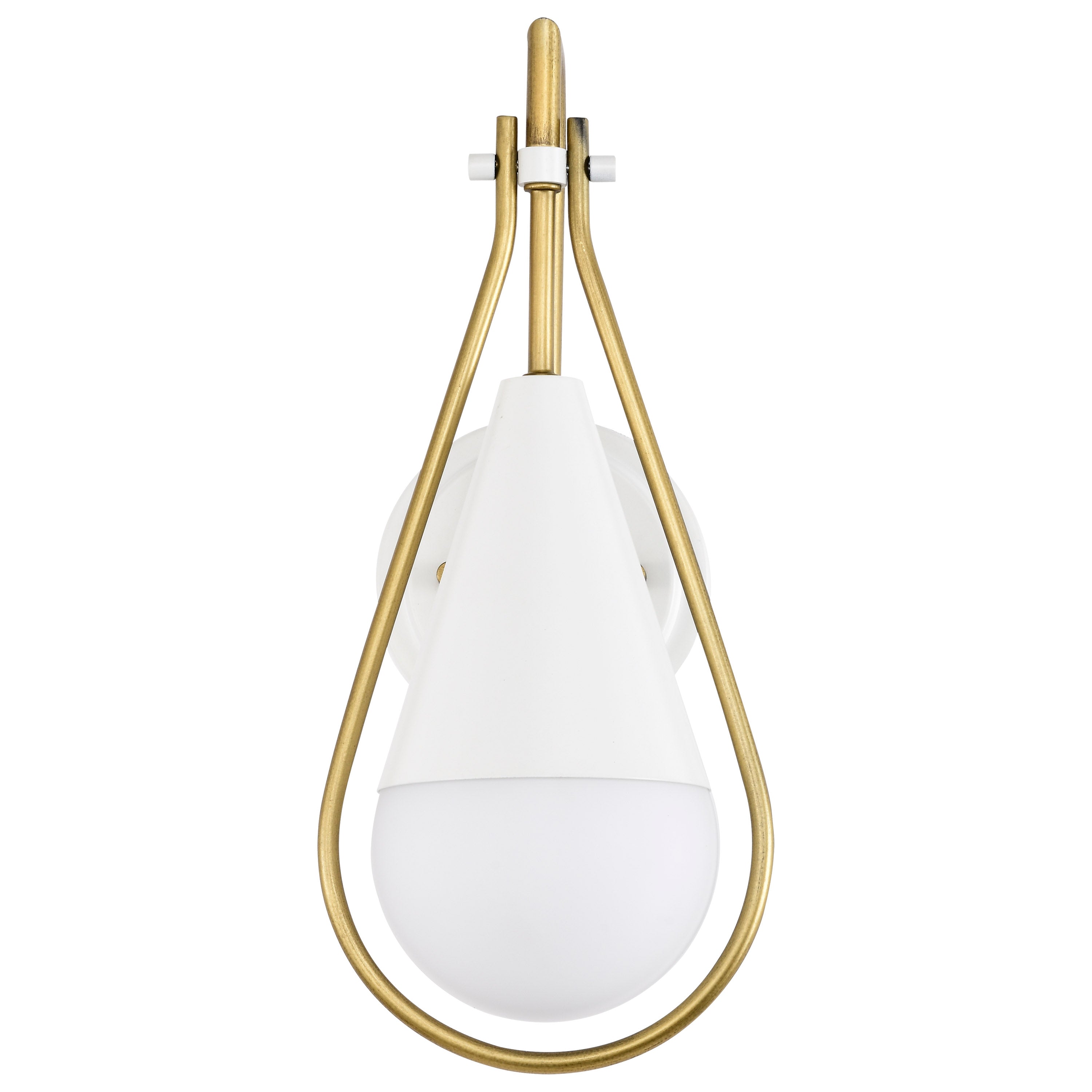 A modern collection with a twist, the Admiral series features a dual finish, unique design, and a fashionable statement for home luminaires. A suspended tear-dropped shape is comprised of matte white with natural brass elements encompassing the fixture. The white opal glass orb shields the light source for smooth, even lighting to bring a warm glow to any space. A beautiful design that is versatile and will compliment a variety of home decors.