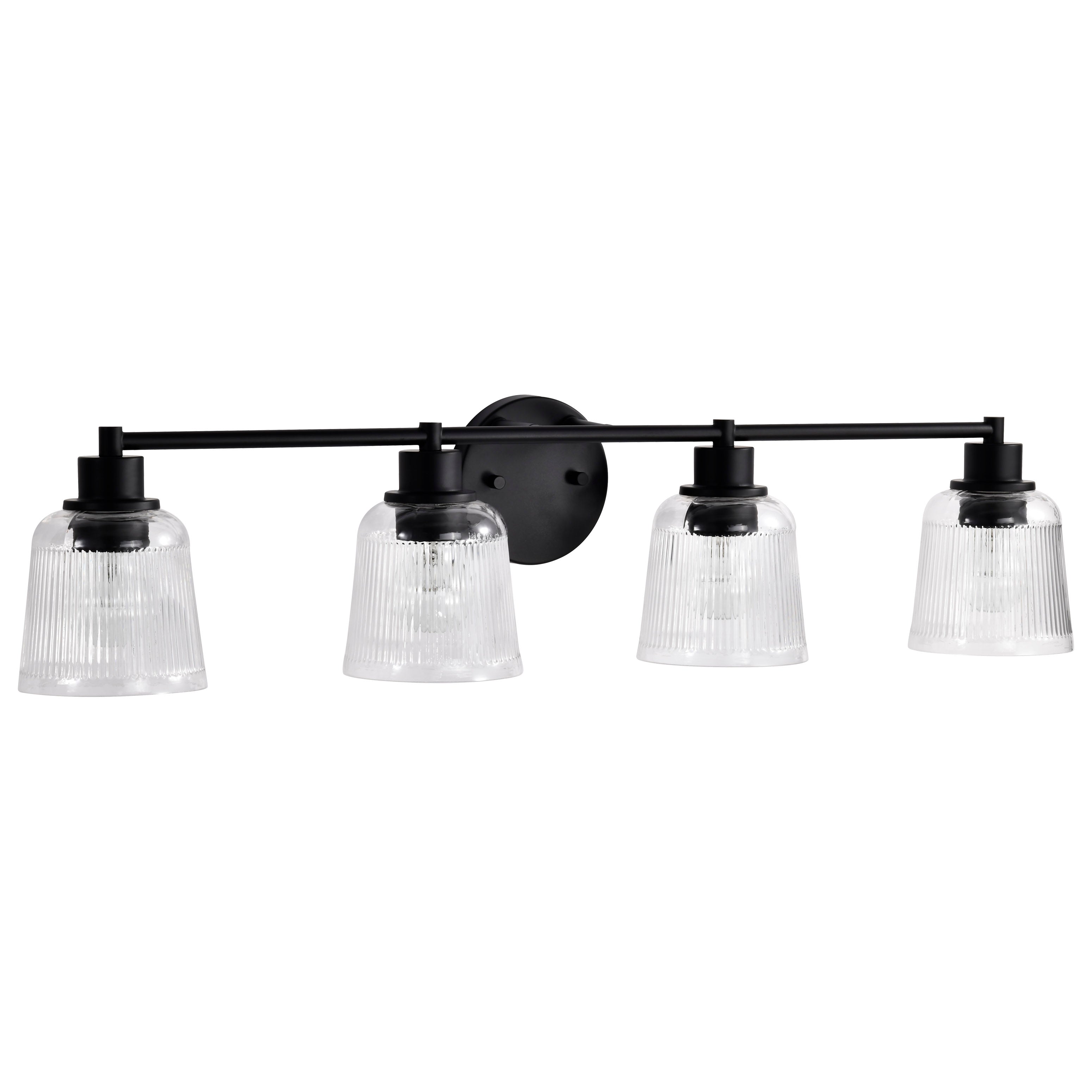 Rustic charm meets contemporary style in the Grayson Collection, designed to bring industrial farmhouse elegance to today's interiors. Ideal for creating inviting spaces with character, the clean lines and textured details capture the essence of enduring design. With its bold matte black finish and clear ribbed glass, this collection delivers a perfect blend of warmth and modern sophistication. Whether in a cozy kitchen or a chic living area, Grayson offers that perfect touch of Industrial Farmhouse for modern living.