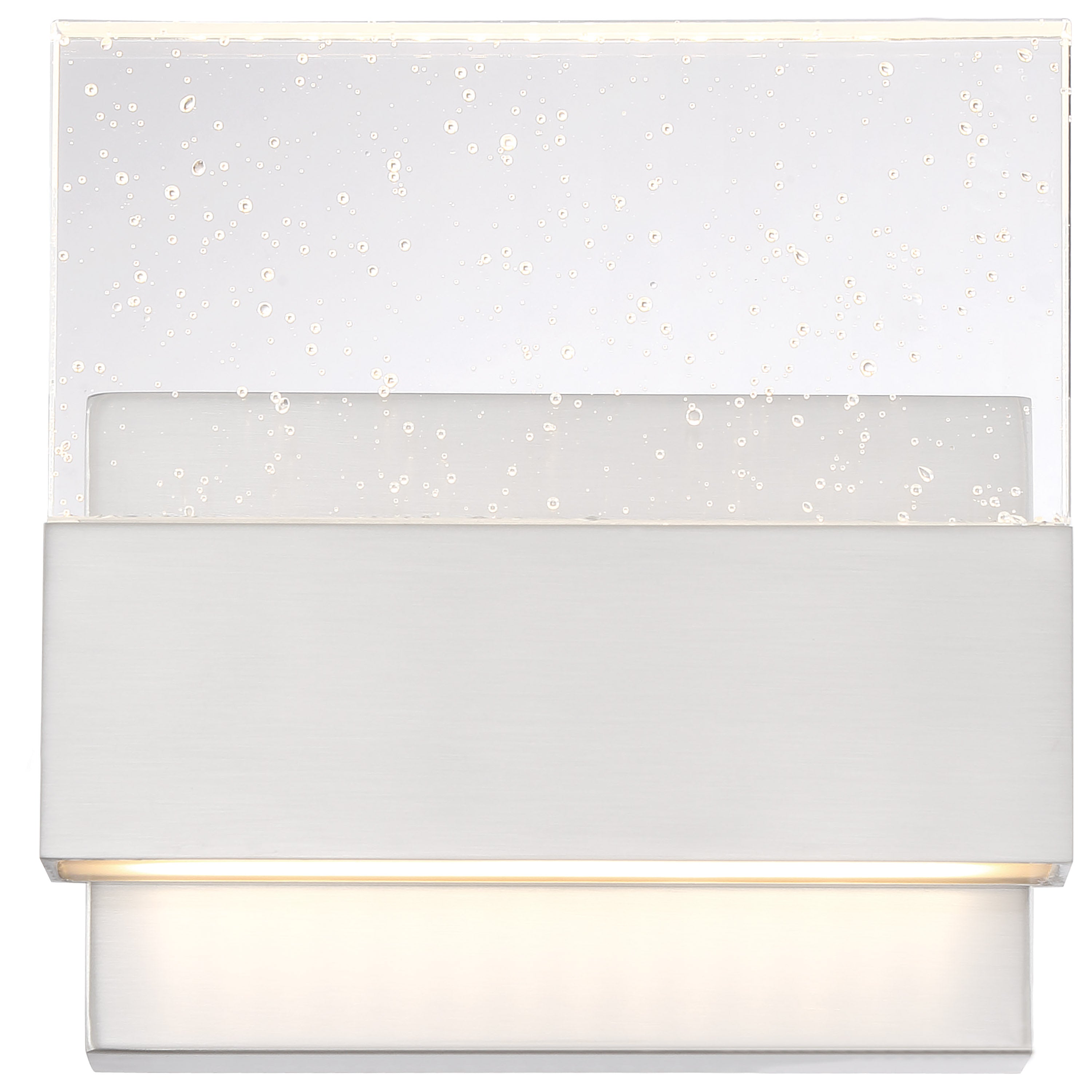The Ellusion LED medium wall sconce in a polished nickel finish with clear seeded glass lends a modern look to your room. Elegantly illuminate living rooms, dining rooms, and hallways with this contemporary, 15-watt wall sconce. Dimmable and stylish, this sconce delivers 30,000 hours of warm white light.