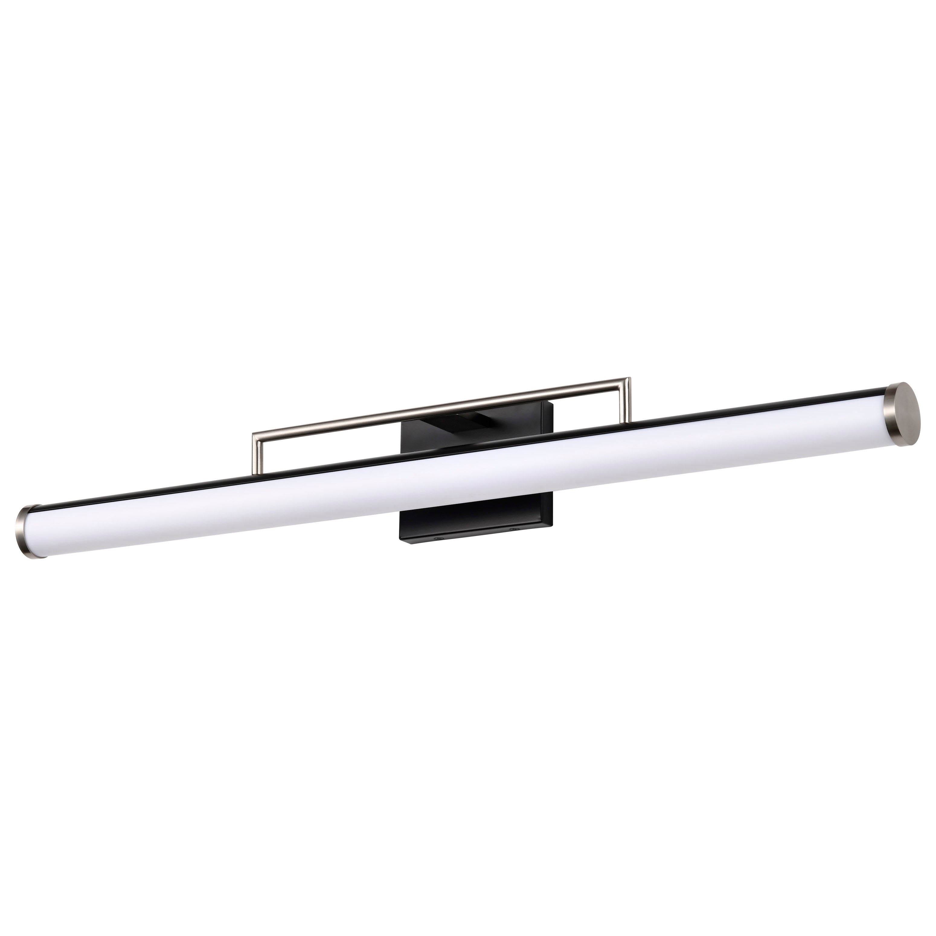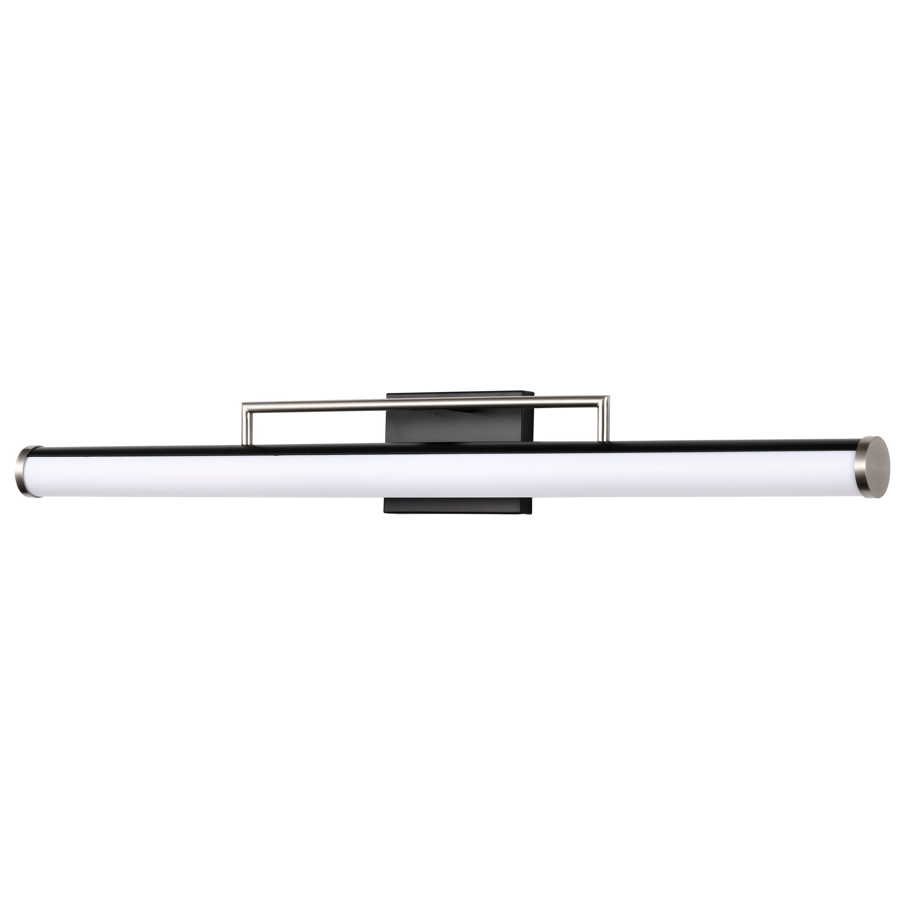 The design of the Solano integrated LED bathroom vanity lights series is sleek and minimalist, with a simple yet elegant shape. These stylish fixtures are available in black with brushed brass accents, or black with brushed nickel, to accentuate the clean lines and broad backplate. A white acrylic lens houses the diodes to softly diffuse the light for a warm and comfortable glow. Update a powder room or master bathroom with the Solano vanity lights, stunning lighting for today's home.