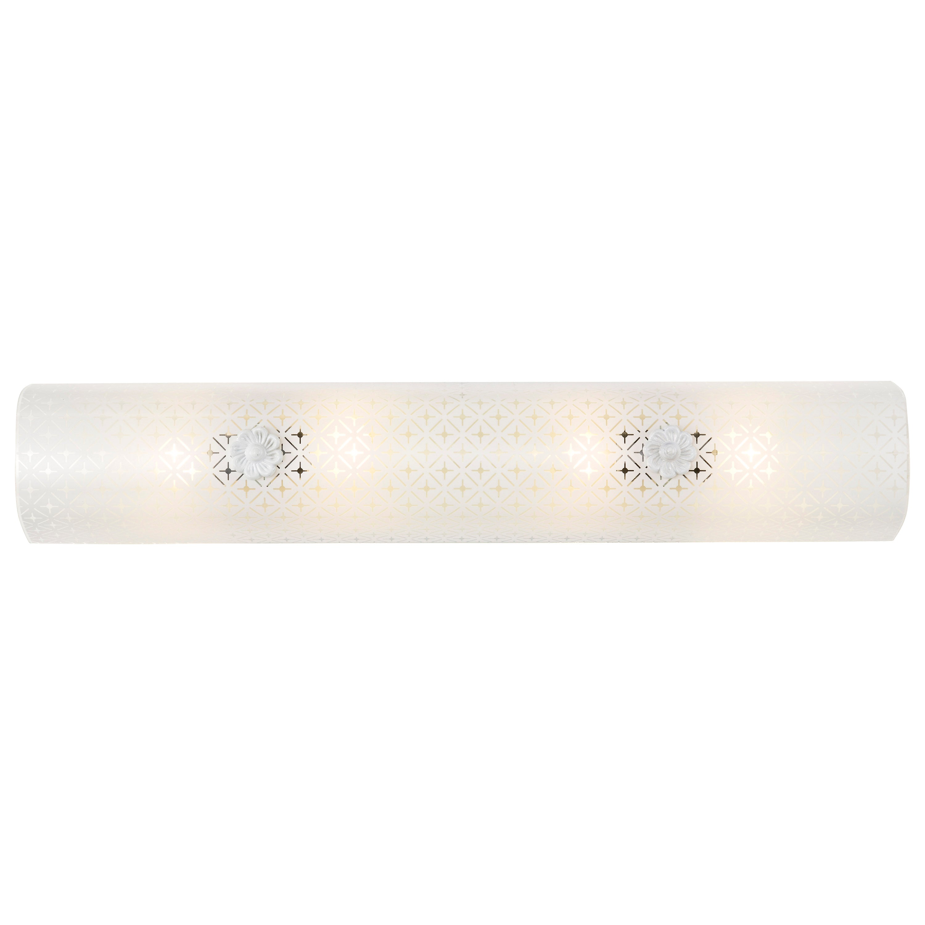 Nuvo's 4 light, 24 inch vanity with U channel glass is a graceful lighting solution for the home. Perfect for living rooms, dining rooms, hallways, and foyers, this white vanity fixture features four bulbs behind gorgeous white diamond glass. Traditional and elegant, this vanity fixture adds style to any home decor.