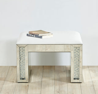 26 inch Crystal Vanity Leather stool in Clear Mirror Finish