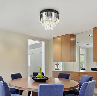 Sydney 9 light Matte Black Flush Mount Silver Shade (Grey) Royal Cut Crystal