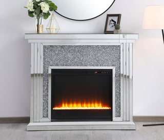 47.5 in. Crystal mirrored mantle with crystal insert fireplace