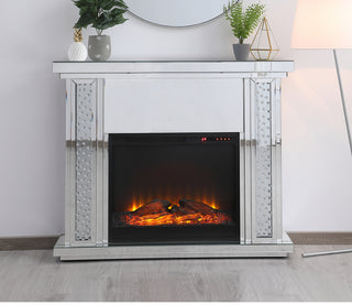 47.5 in. Crystal mirrored mantle with wood log insert fireplace