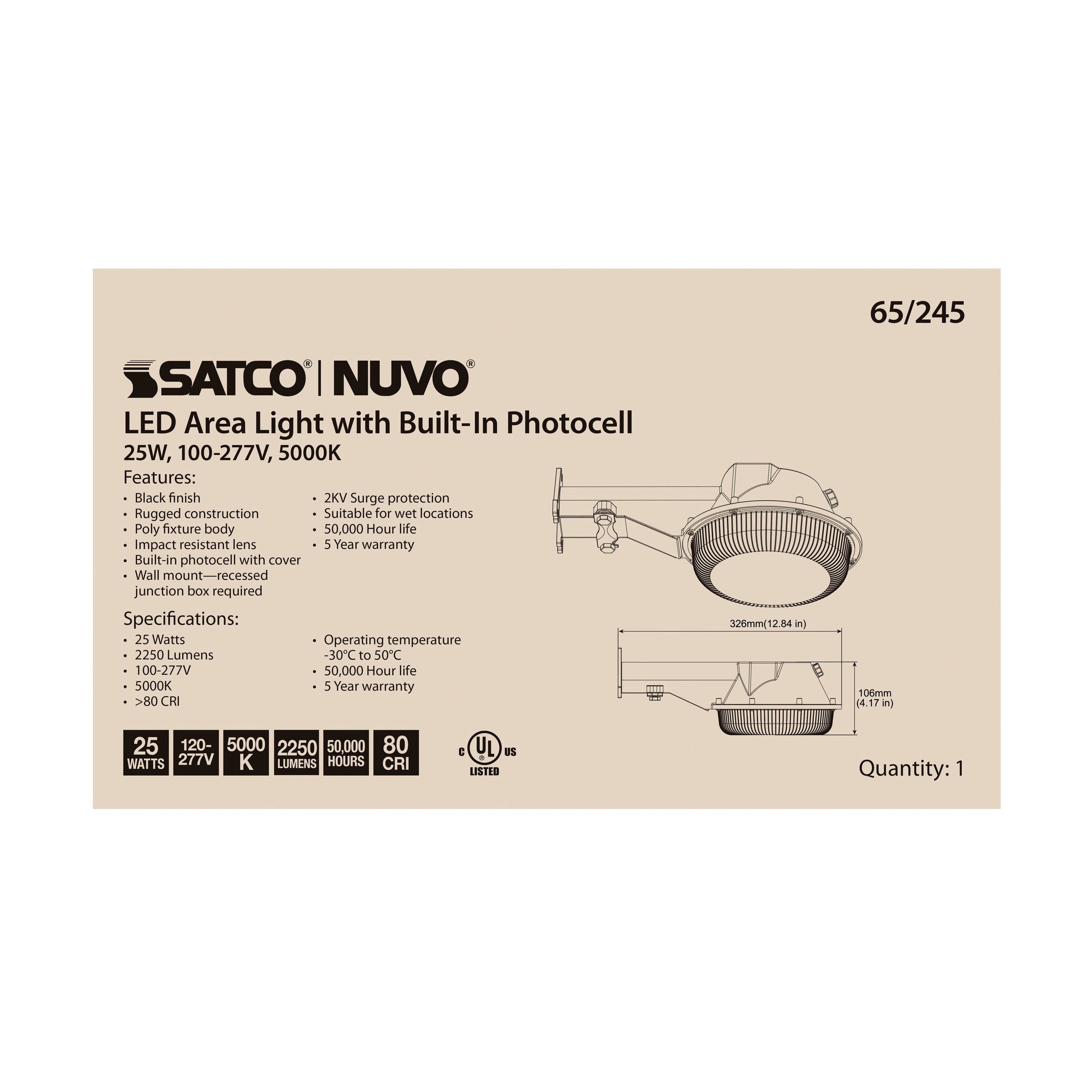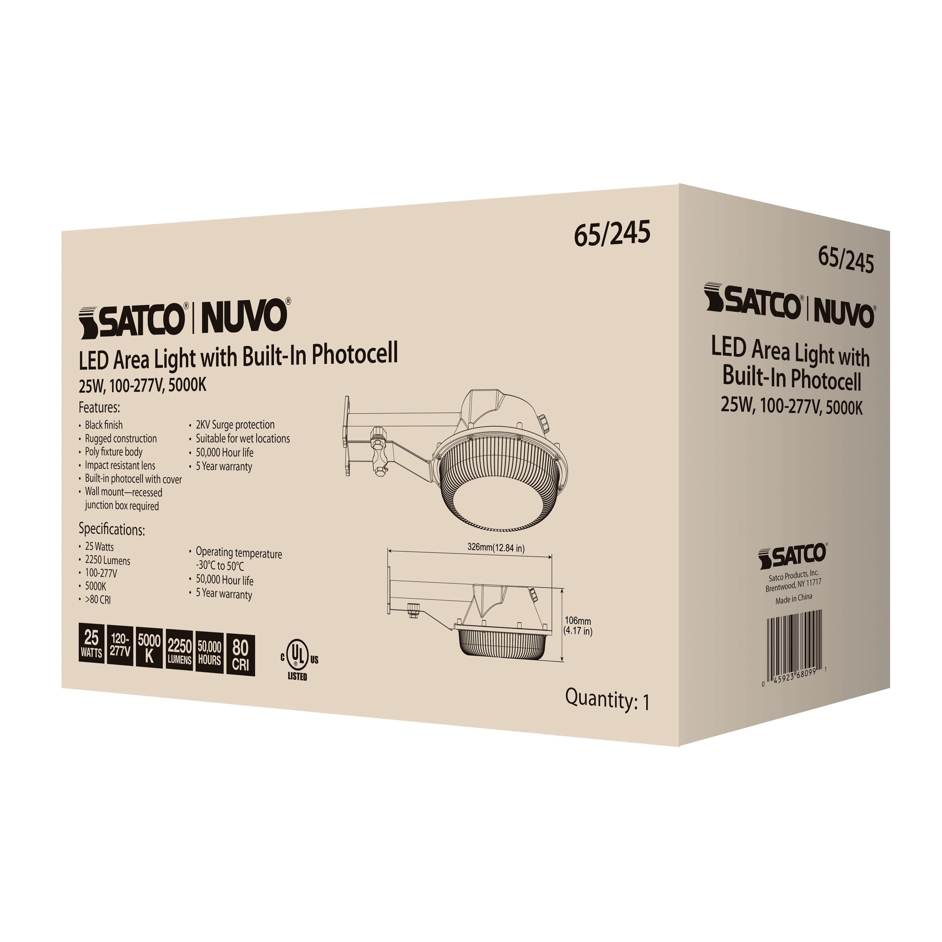 LED 25 watt Area Light with photocell and optional cover provides ample 5000K outdoor lighting for your building exterior. In bright and brilliant cool white with a 2200 lumen output and 90 degree beam angle, this fixture is IP65 rated for use in all weather conditions.