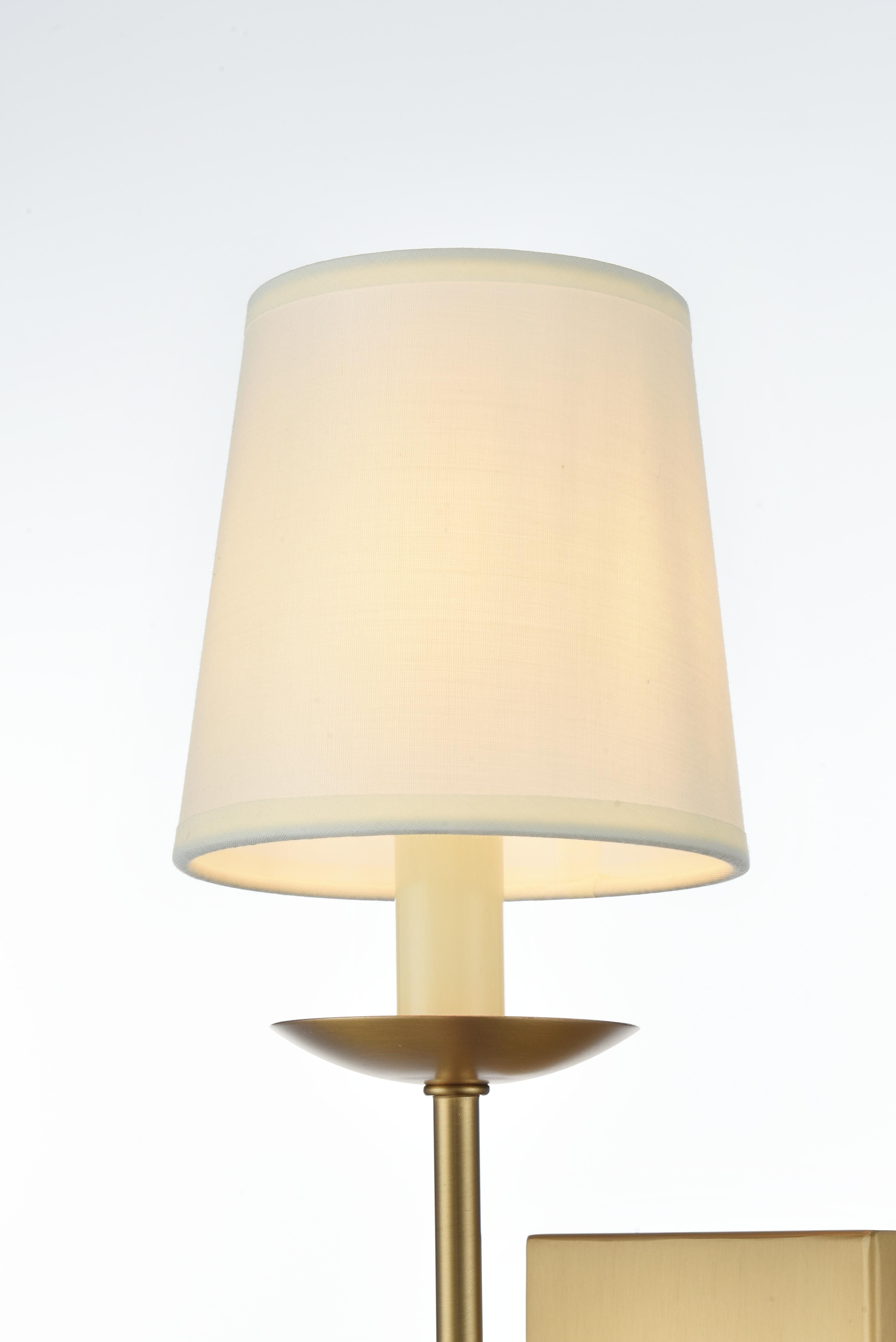 Add a touch of timeless elegance to your home with this versatile wall sconce, designed to complement most room. Featuring a slender metal arm and a round backplate, this fixture is available in chrome, black, brass, or burnished nickel finishes to match a variety of interior styles. The soft, tapered fabric shade emits a gentle, ambient glow, making it perfect for creating a cozy and welcoming atmosphere. This wall sconce uses one E12 socket bulb (not included) and is compatible with dimmable bulbs, giving you the flexibility to set the right mood for any occasion. Whether placed in a hallway, bedroom, or living room, this sconce brings understated sophistication to your space with its classic silhouette and clean lines.