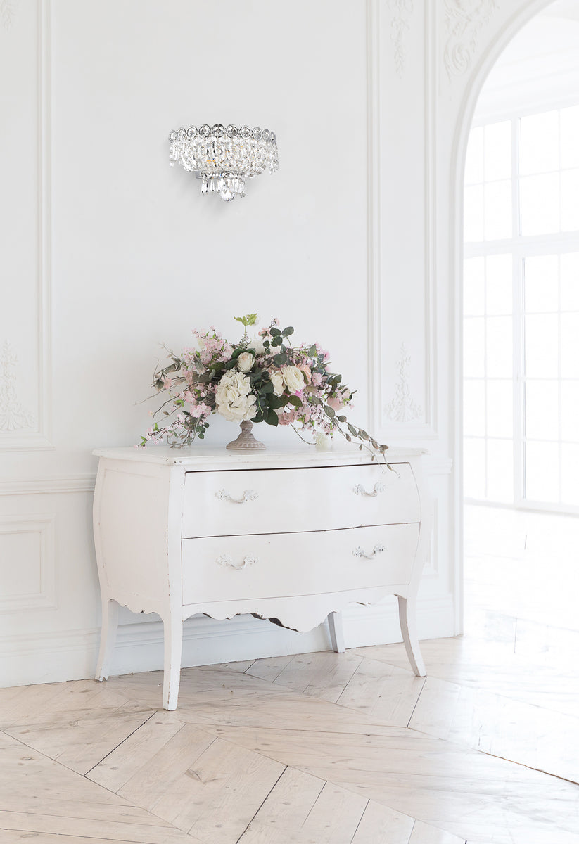 The Century collection brings a touch of 19th-century French elegance to your home. Choose wall sconces in either a bell-shaped design or a bottom hemisphere shape, profusely covered in clear crystal octagons and prisms. Available in an array of crystal trims embellishing frames finished in gold or chrome.