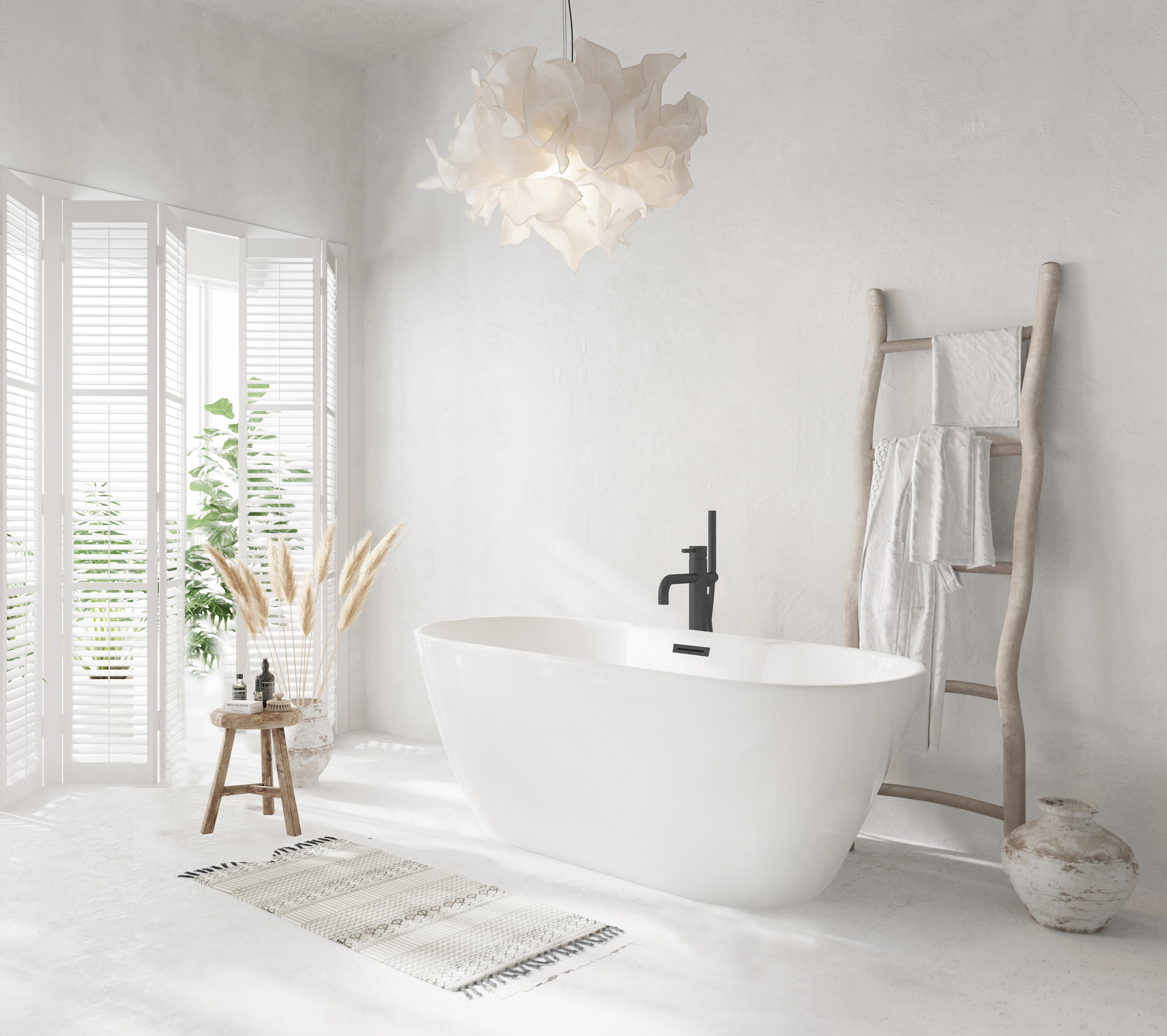 59 inch Bathtub in Glossy White with Matte Black Trim