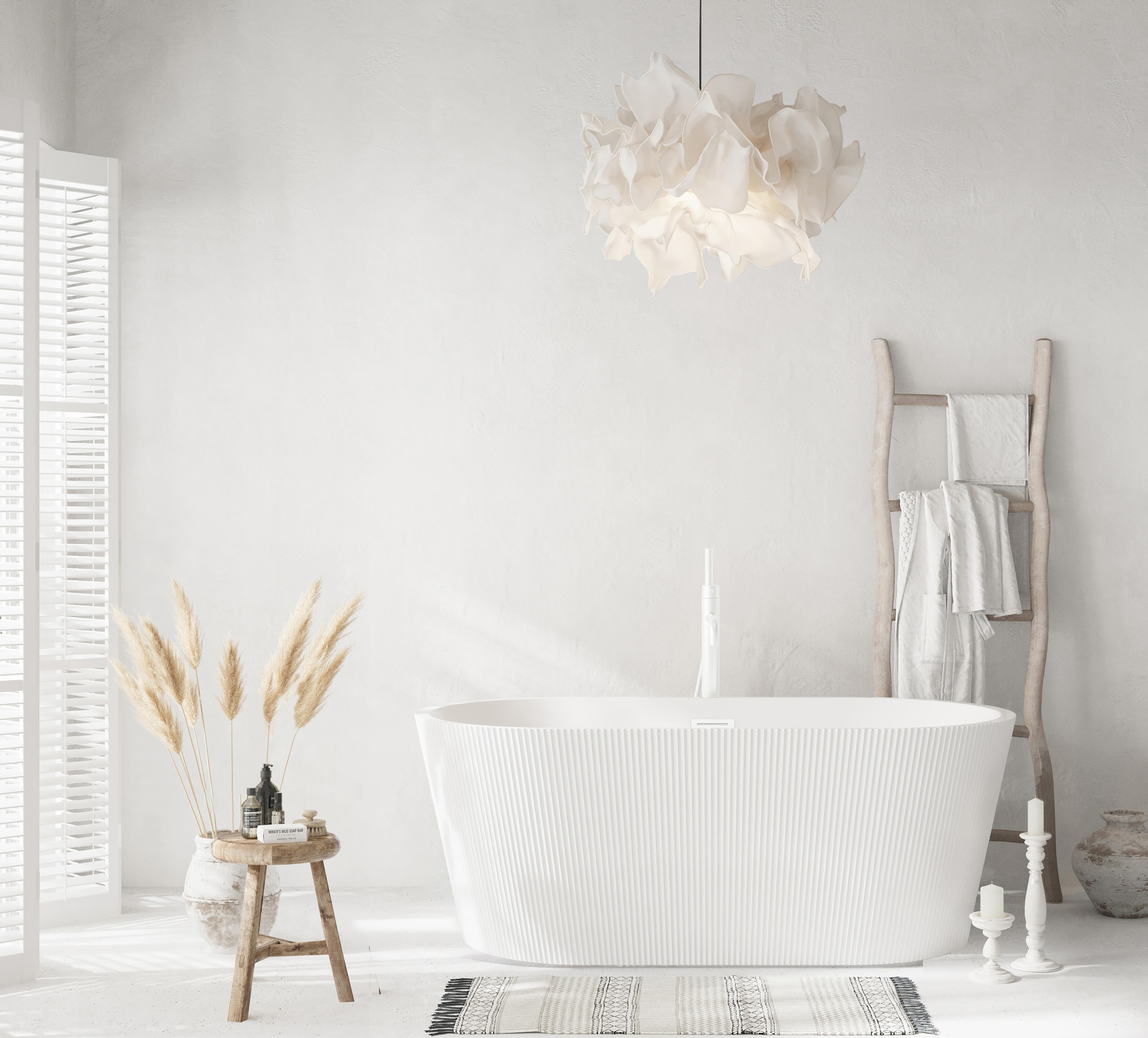 Immerse yourself in the ultimate relaxation experience with this elegant freestanding soaking bathtub, featuring a beautifully textured vertical fluted design that adds a touch of sophistication to your bathroom. The smooth, rounded rim offers comfortable arm support, making it the ideal spot to unwind. Equipped with a pop-up drain and integrated overflow, this tub seamlessly combines convenience and style. With a generous capacity and 15-inch soaking depth, it's perfect for those looking to indulge in a deep, luxurious soak. Available with customizable drain trim finishes like brushed gold, matte black, and more, this bathtub is designed to fit your unique style. Durable and easy to install with adjustable foot levelers, this tub is both a statement piece and a functional retreat in your home.