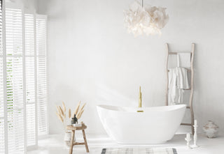 59 inch Soaking Bathtub in Glossy White with Brushed Gold Trim
