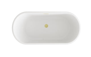 65 inch Soaking Bathtub in Glossy White with Brushed Gold Trim