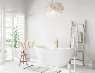 67 inch Soaking Bathtub in Glossy White with Brushed Gold Trim