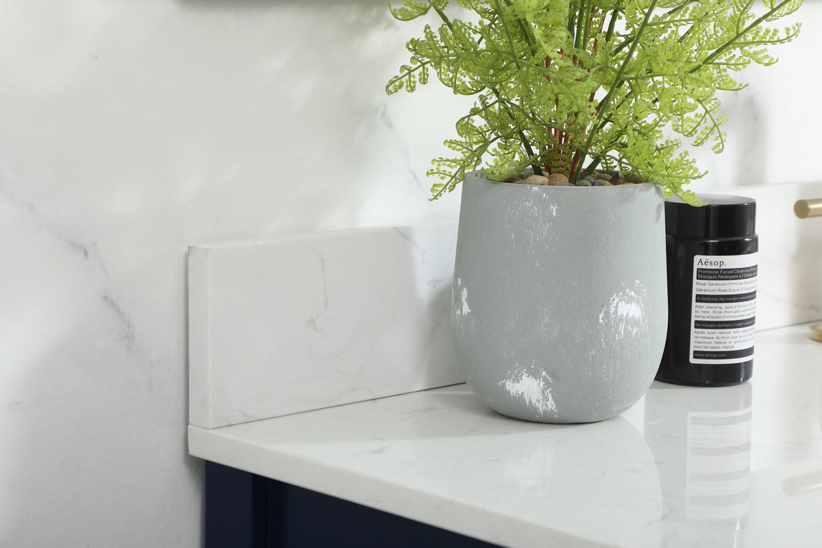 Live in modern comfort with this 48" blue finish vanity. Dressed in a blue and sleek gold metal hardware, its contemporary style will have your bathroom or powder room elevated in modern sophistication. The open shelf at the base and four drawers reveal ample storage space for your bathroom essentials and miscellany. Clean lines create its own visual interest, adding trendy looks to your already chic room. Comes with a matching backsplash to protect your walls.