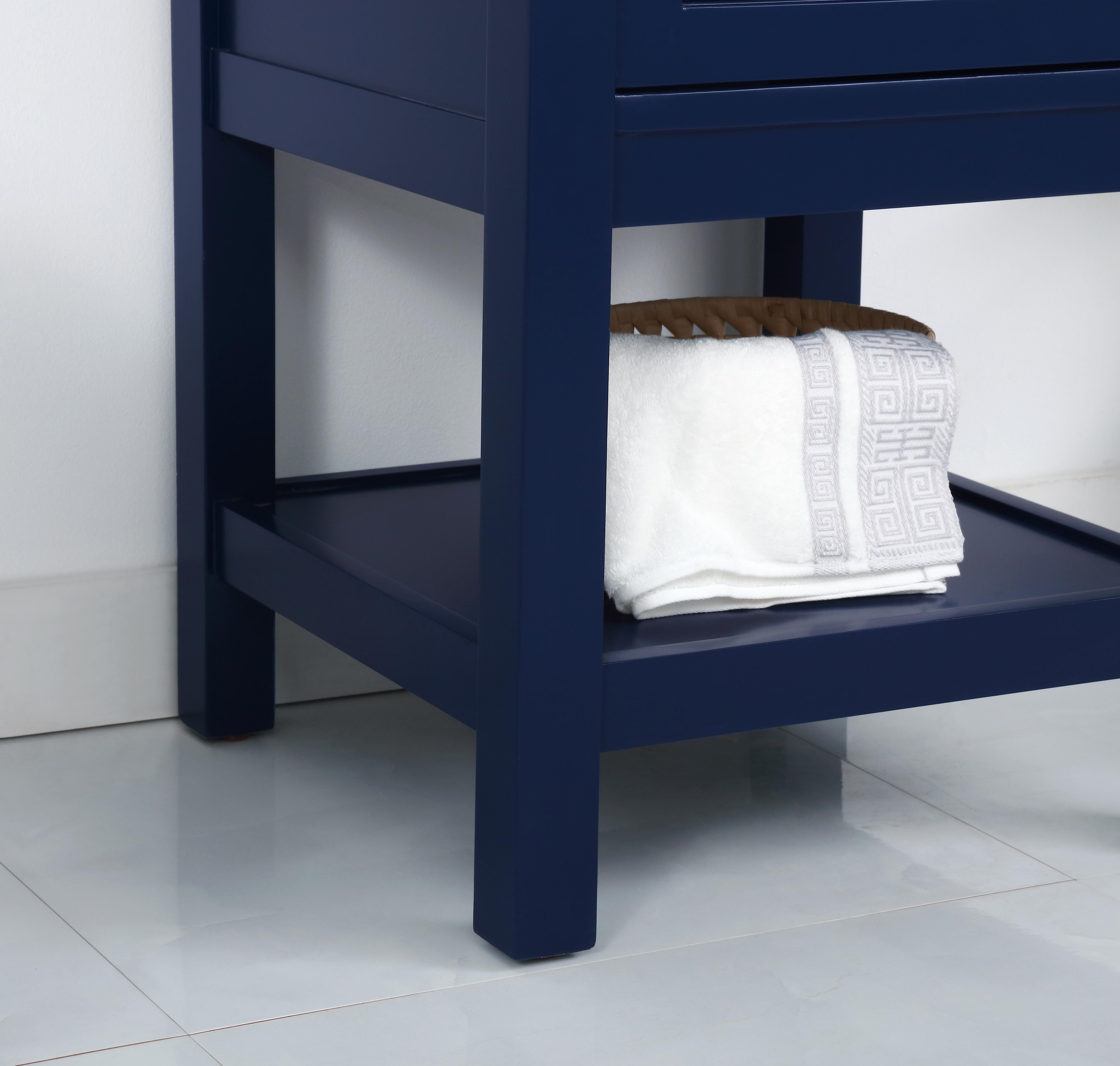 Create a refined and relaxing bath space with this contemporary design vanity, presenting its simplicity and clean straight lines in a minimalist appeal. The 18" vanity, crafted of solid poplar wood, provides ample storage within its soft-close cabinet door and open shelf base, accentuated with gold hardware. Rounding out the design is a luxurious Itallian Carrara white marble with a white porcelain under-mount oval sink.