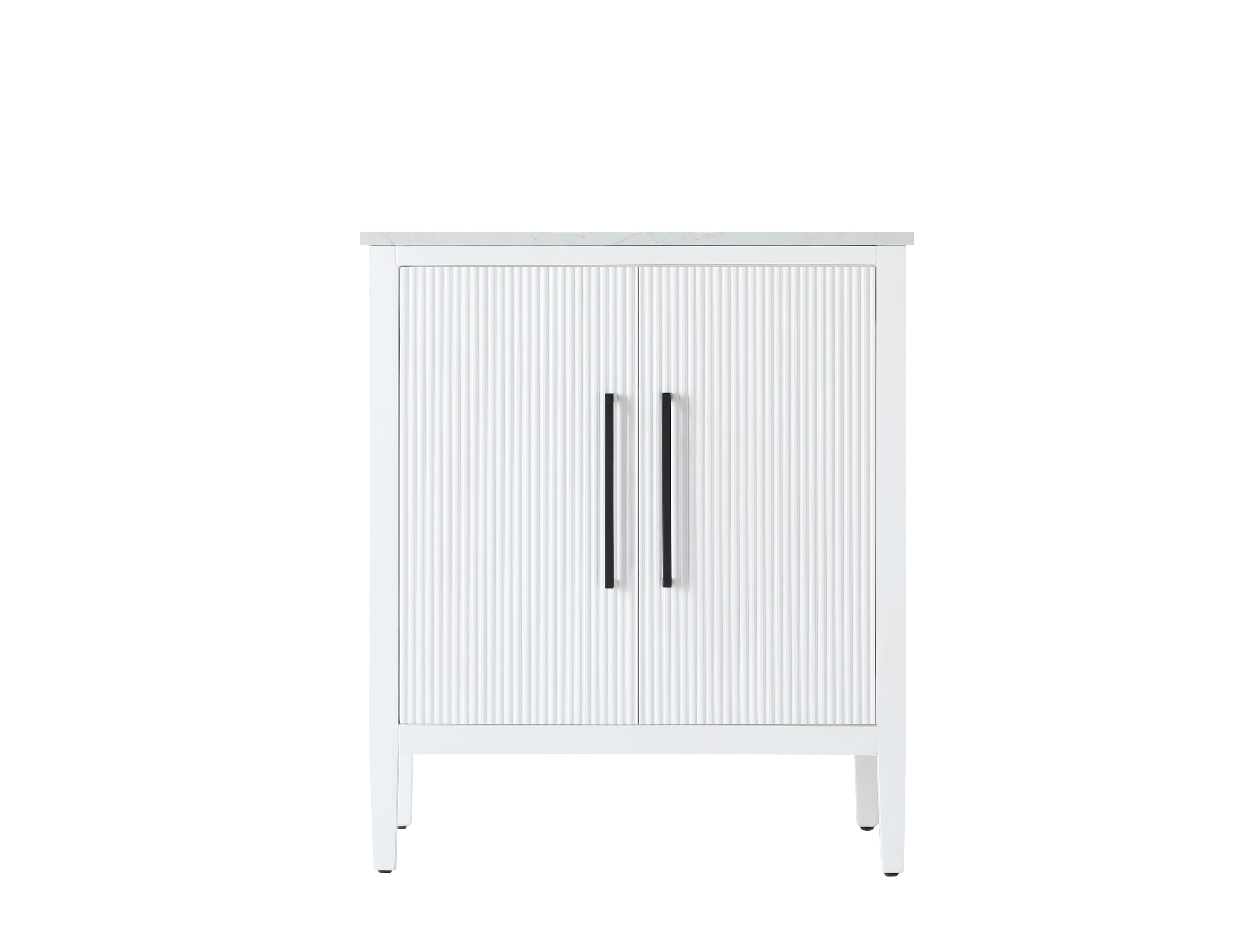 Designed with transitional elegance in mind, this bathroom vanity seamlessly blends traditional elements with modern functionality. Available in five stunning finishes, from the clean sophistication of Crisp White to the natural warmth of Honey Oak, the fluted door and drawer panels add subtle texture and charm. The white engineered marble countertop with natural veining exudes luxury, while the soft-closing doors with sleek black metal pulls offer a quiet, refined experience. Practicality is never compromised, with features like the U-shaped shelf for plumbing, and pre-drilled faucet holes for easy customization. Whether your style leans modern or classic, this vanity is the perfect balance of beauty and function, appealing to customers with a taste for quality and style.