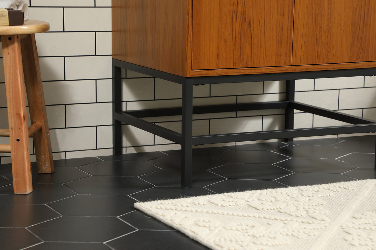 This vanity is a sleek-looking piece of bathroom furniture that is easy to incorporate into your design scheme. The cabinet features a smooth door panel with an oversized steel handle and soft close hinges provide ample room for accessories. Constructed of engineered wood, the powder-coated metal rod legs are an urban industrial look that we love. Minor assembly of the metal legs needed to get this vanity up and running.
