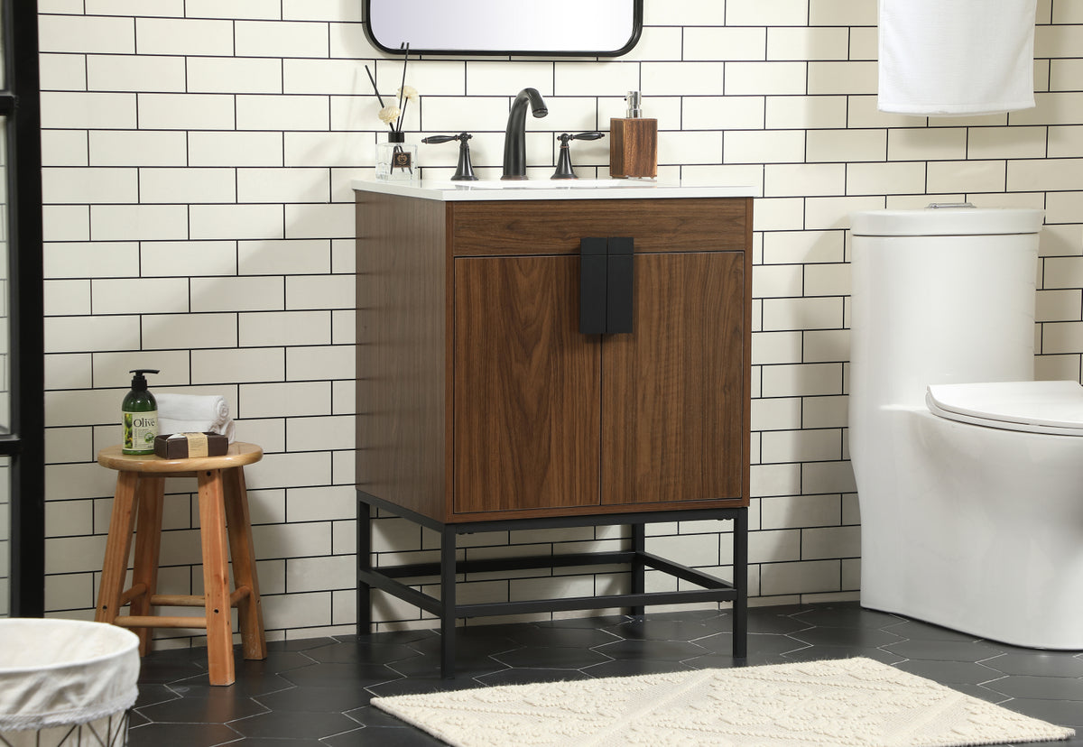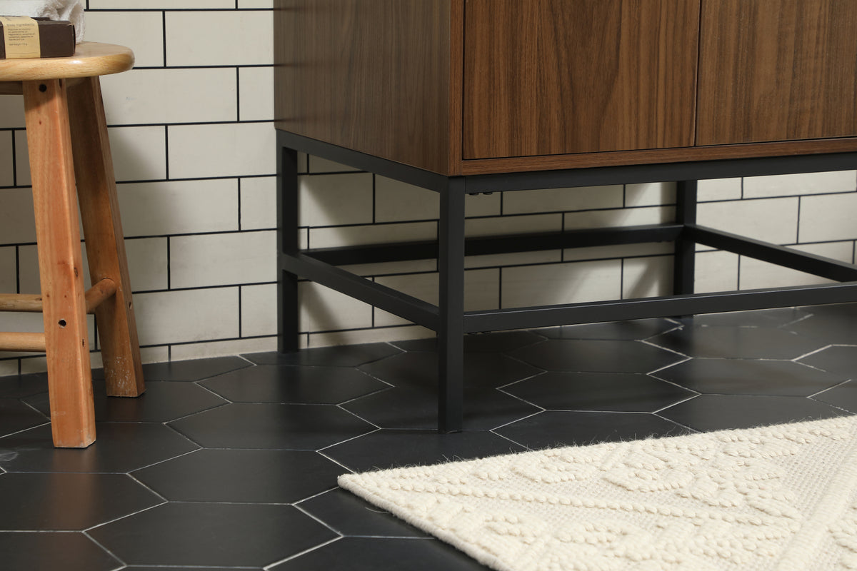 This vanity is a sleek-looking piece of bathroom furniture that is easy to incorporate into your design scheme. The cabinet features a smooth door panel with an oversized steel handle and soft close hinges provide ample room for accessories. Constructed of engineered wood, the powder-coated metal rod legs are an urban industrial look that we love. Minor assembly of the metal legs needed to get this vanity up and running.