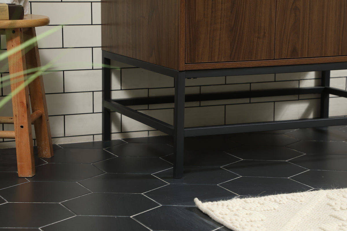This vanity is a sleek-looking piece of bathroom furniture that is easy to incorporate into your design scheme. The cabinet features a smooth door panel with an oversized steel handle and soft close hinges provide ample room for accessories. Constructed of engineered wood, the powder-coated metal rod legs are an urban industrial look that we love. Minor assembly of the metal legs needed to get this vanity up and running.