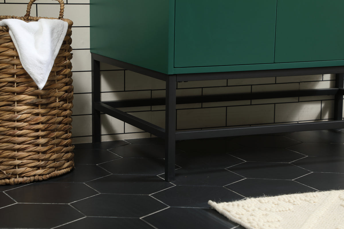 This vanity is a sleek-looking piece of bathroom furniture that is easy to incorporate into your design scheme. The cabinet features a smooth door panel with an oversized steel handle and soft close hinges provide ample room for accessories. Constructed of engineered wood, the powder-coated metal rod legs are an urban industrial look that we love. Minor assembly of the metal legs needed to get this vanity up and running. Comes with a matching backsplash to complete the look and protects your wall.