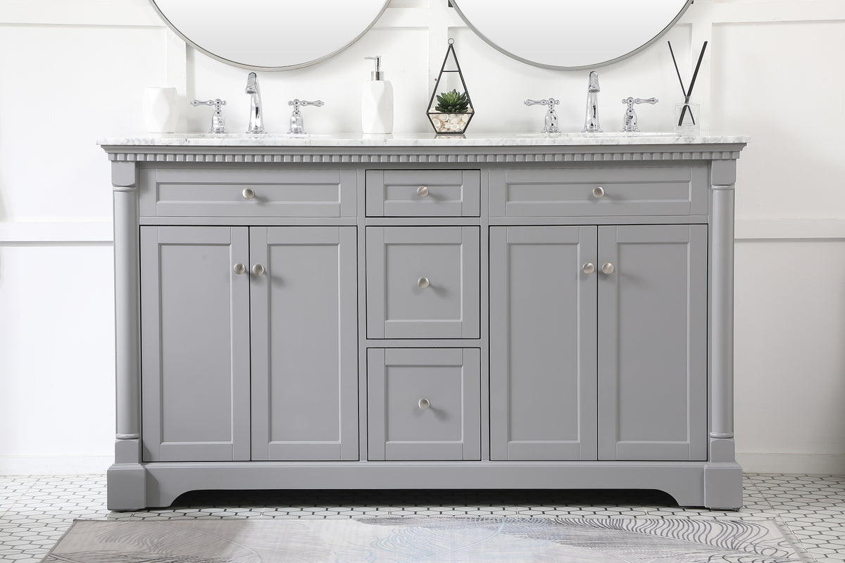 Make the most of your space with this traditional style bathroom vanity. Its traditional style is able to complement many aesthetics, natural marble countertop, and the round brushed nickel knobs that sits above the soft closing doors, allowing you to store an assortment of bathroom essentials. The lower shelf makes it the perfect space to hold new towels for your guests. This compact vanity ensures both form and function in your bathroom or powder room for you and your guests.