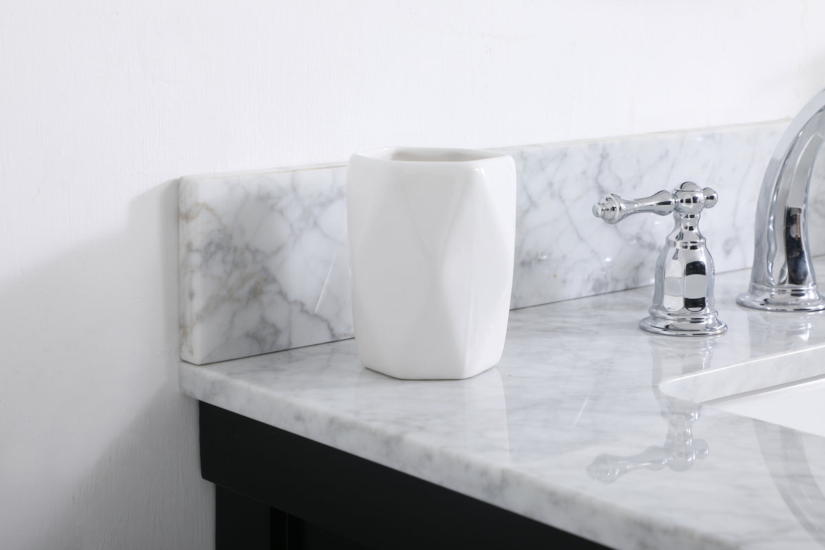 Make the most of your space with this farmhouse style bathroom vanity. Complements well with its beautiful finish, carrara white marble countertop, and the contemporary slender handle bar that sits on the functional drawers with soft closing mechanism, allowing you to store an assortment of bathroom essentials. The lower shelf makes it the perfect space to hold new towels for your guests. This stylish vanity ensures both form and function in your bathroom for you and your guests.
