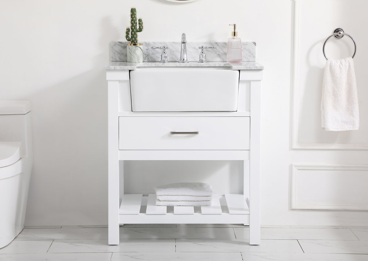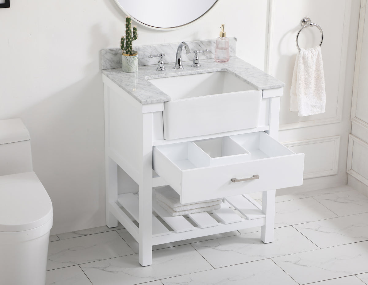 30 inch Single bathroom vanity in white with backsplash