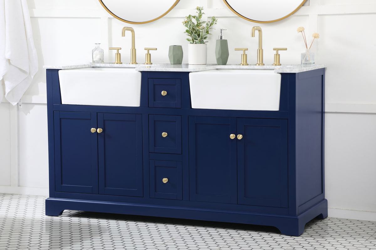 Make the most of your space with this farmhouse style bathroom vanity. Complements well with its beautiful finish, carrara white marble countertop, and the contemporary slender handle bar that sits on the functional drawers with soft closing mechanism, allowing you to store an assortment of bathroom essentials. The lower shelf makes it the perfect space to hold new towels for your guests. This stylish vanity ensures both form and function in your bathroom for you and your guests.