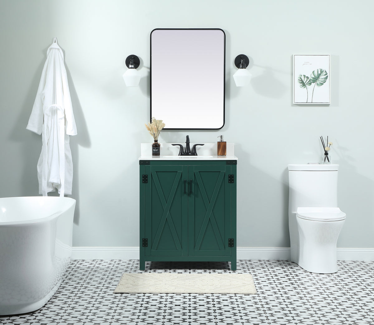 30 inch Single bathroom vanity in green with backsplash